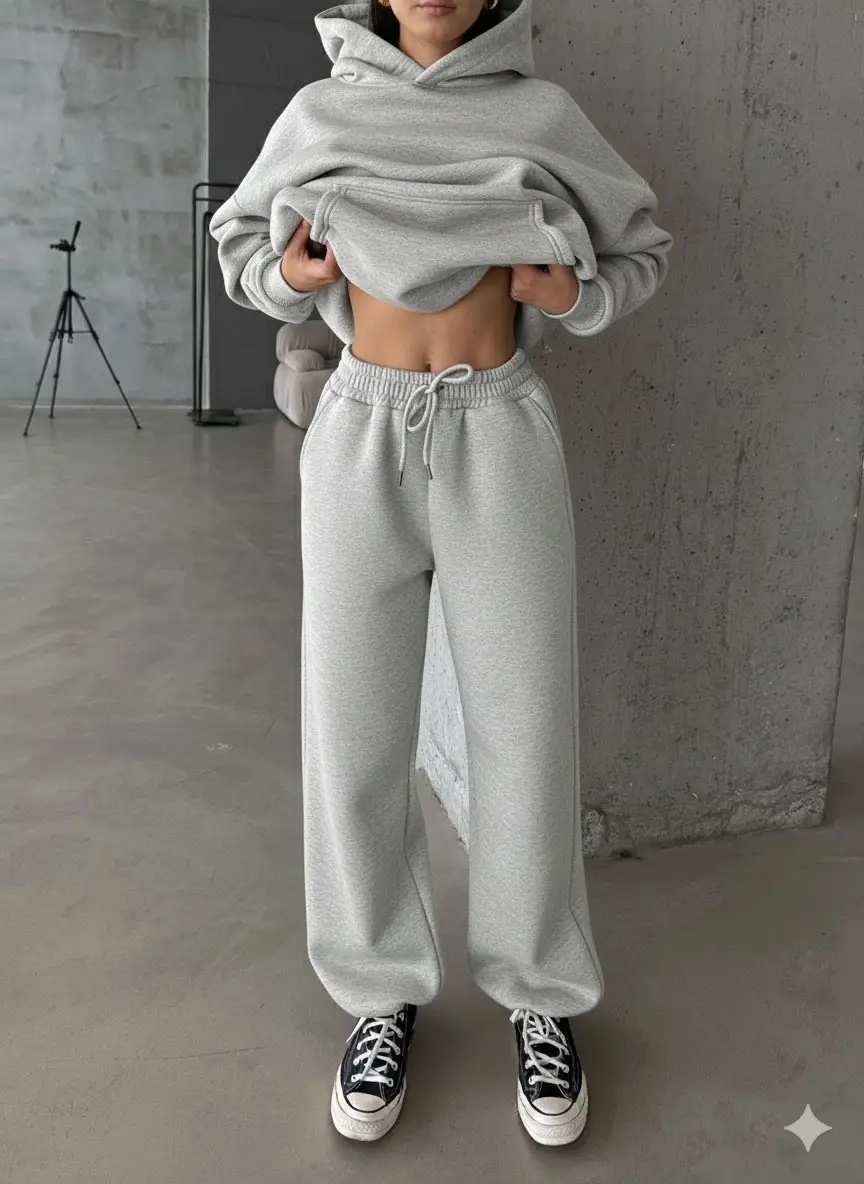 Terzi Bey markasının şık ve konforlu bir seçeneği olan 3 iplik şardonlu Lastik paça eşofman gri p510439, spor şıklığı seven kadınların tercihi oluyor.
