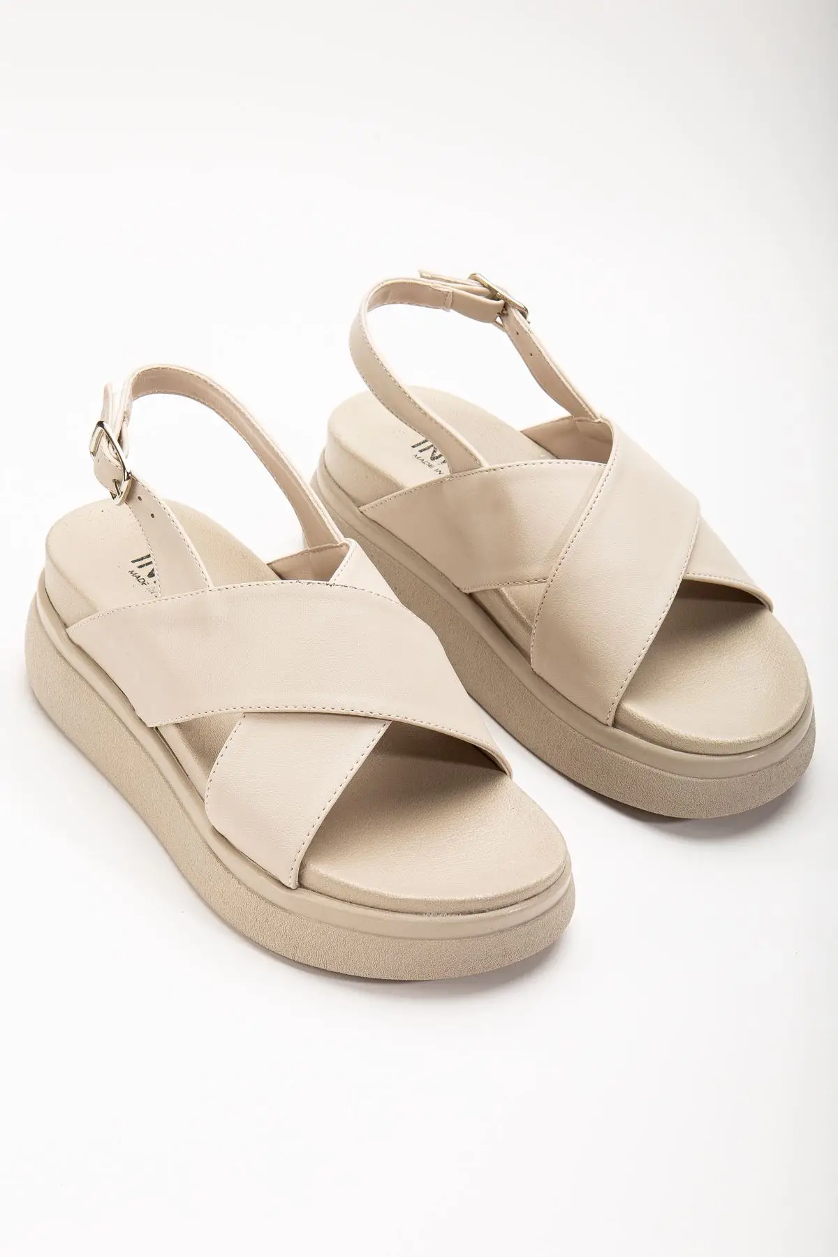 Bej Dolgu Topuk Kadın Sandalet, modern tasarımı ve üstün konforu bir araya getiren eşsiz bir üründür. Günlük kullanıma uygun yapısı, kaliteli malzeme seçimi ve şık görünümü ile kadınların gardırobunun vazgeçilmez parçalarından biri olmaya adaydır.