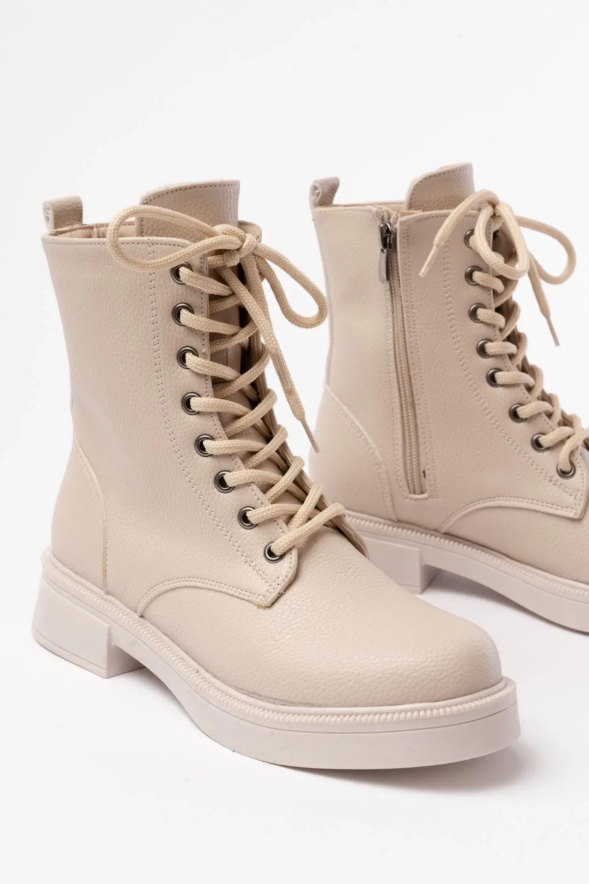 Bej Galata Düz Topuklu Bağcıklı Fermuarlı Günlük Kadın Bot, modern tasarımı ve üstün konforu bir araya getiren eşsiz bir üründür. Günlük kullanıma uygun yapısı, kaliteli malzeme seçimi ve şık görünümü ile kadınların gardırobunun vazgeçilmez parçalarından biri olmaya adaydır.