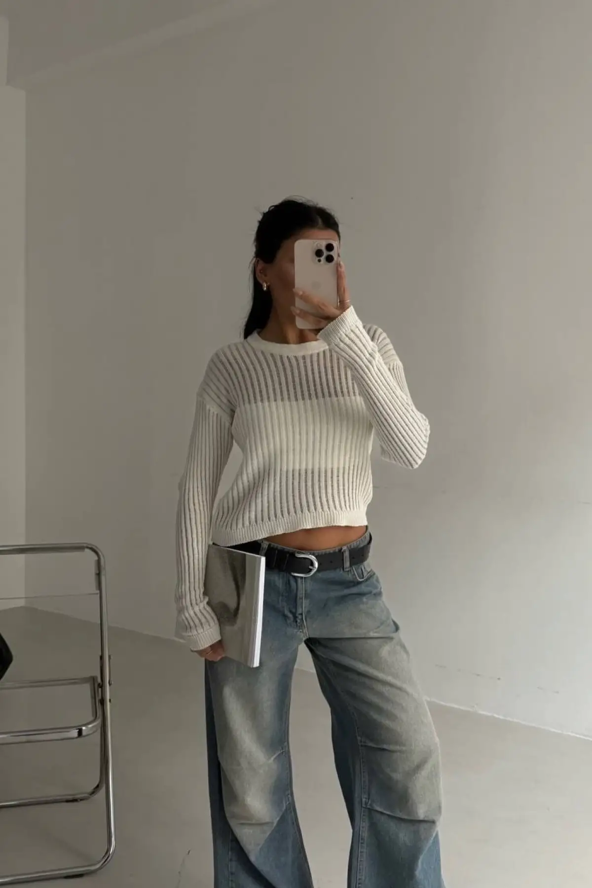 Bu sezonun trendi olan bıyıklı triko kazak, gardırobunuzu şıklık ve rahatlıkla buluşturuyor. Beyaz rengiyle her kombinasyona uyum sağlayan bu kazak, hem şık hem de spor tarzı seven kadınların favorisi olacak.