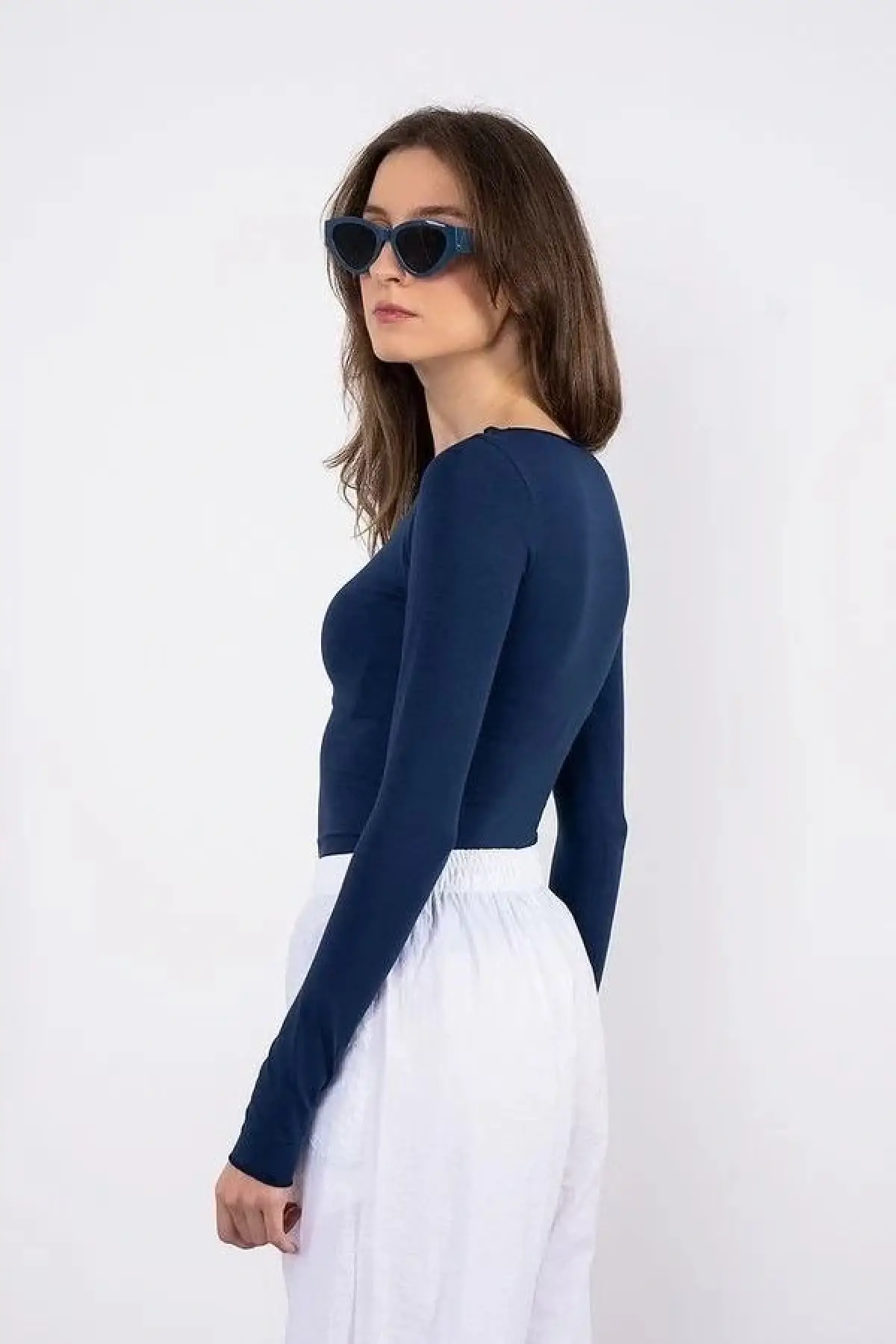 Madonna Çapraz Yaka Bluz Lacivert T4331