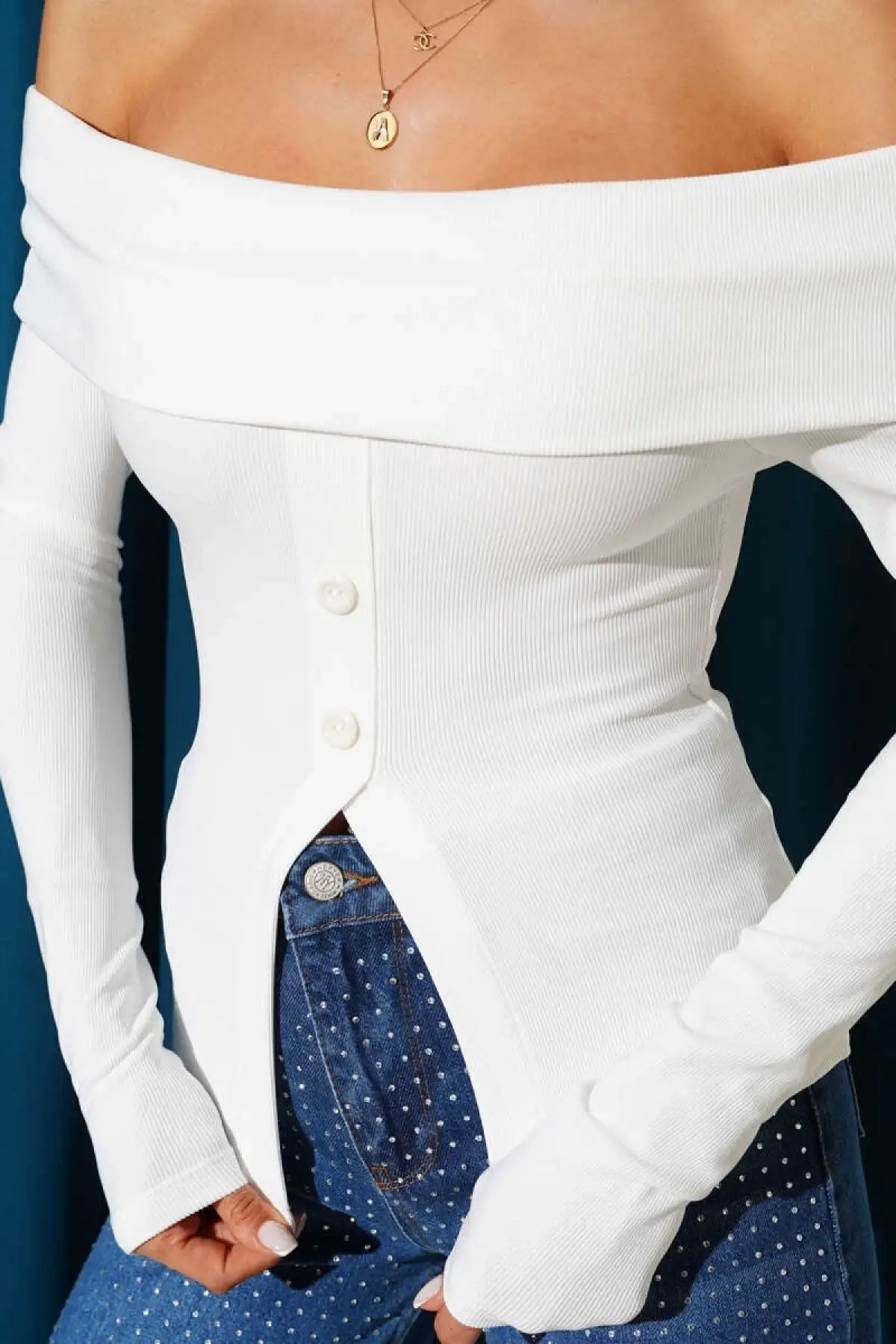 Madonna Yaka Düğmeli Bluz Beyaz T4329