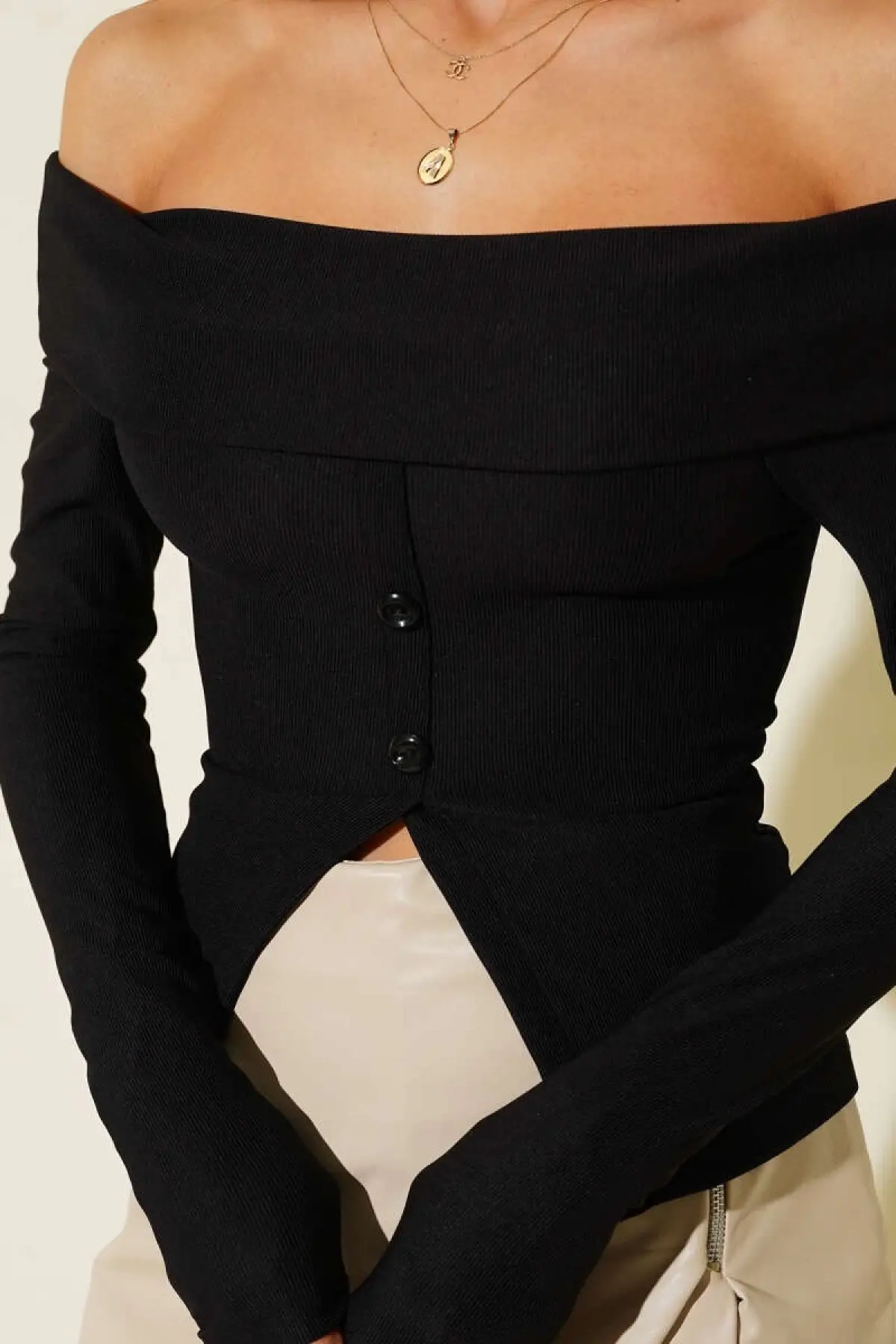 Madonna Yaka Düğmeli Bluz Siyah T4329