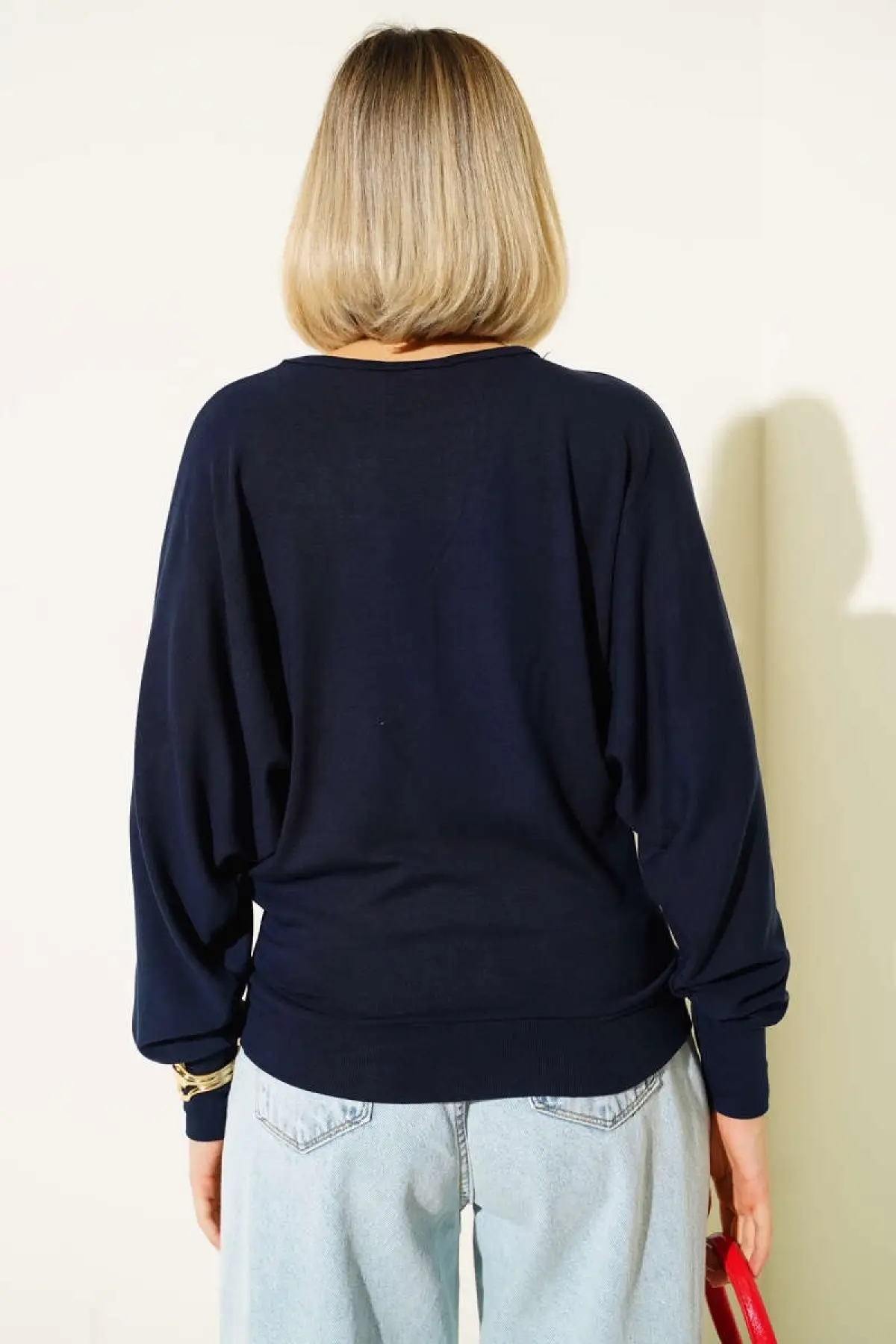 Yarasa Kol Salaş Bluz Lacivert T4273