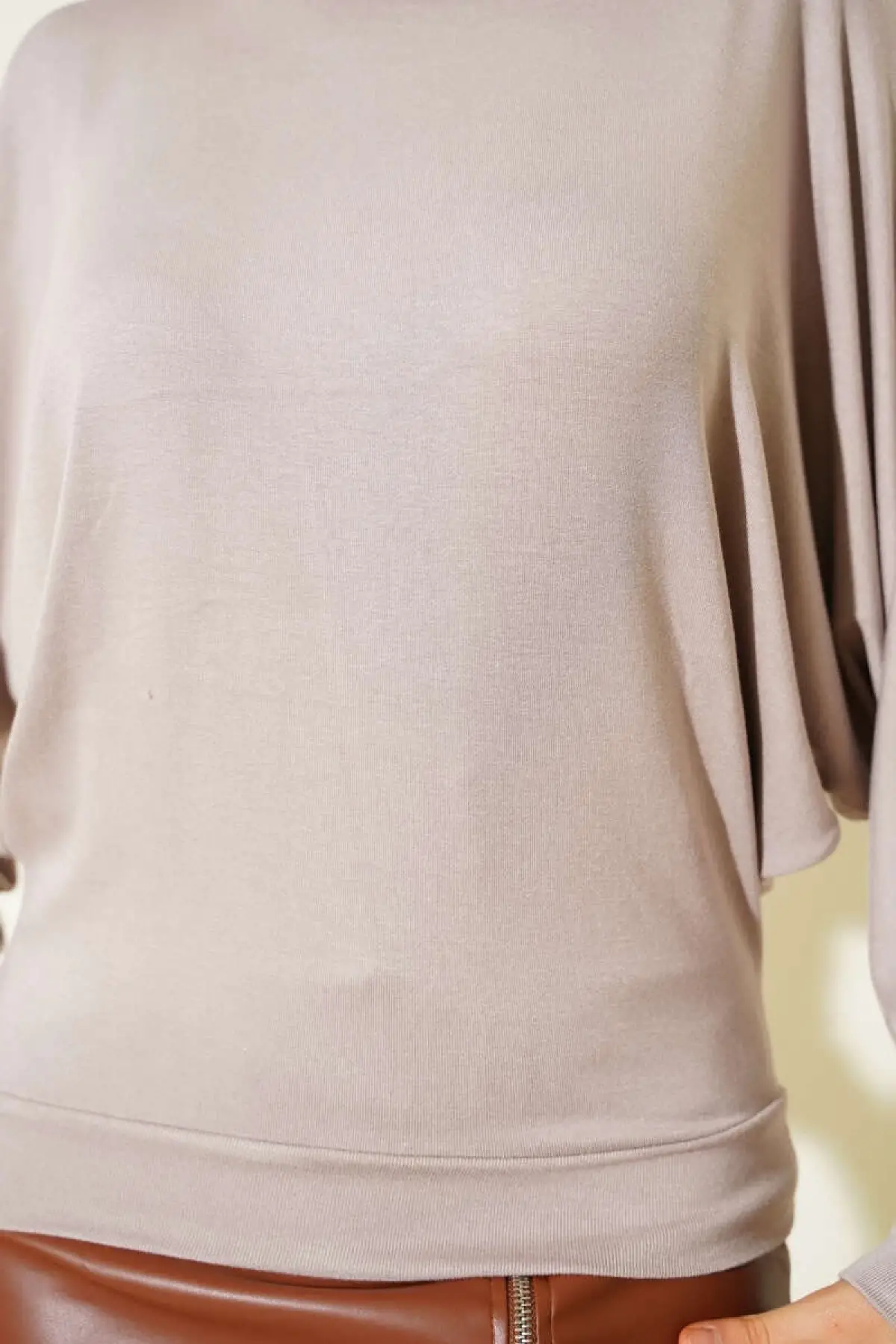 Yarasa Kol Salaş Bluz Vizon T4273