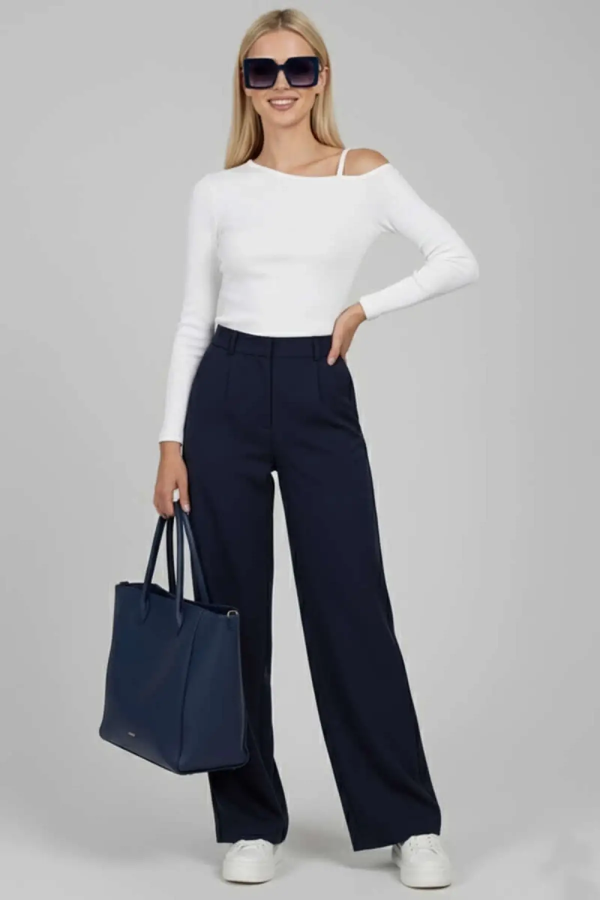 Tek Omuz İpli Bluz Lacivert T4328