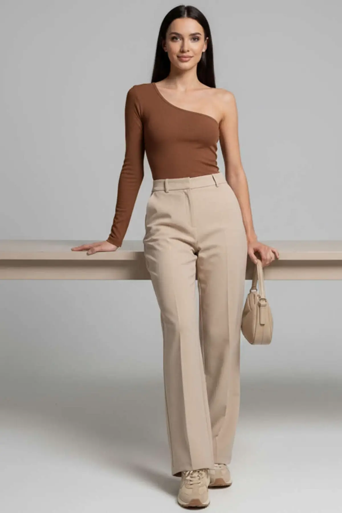Tek Omuzlu Basic Bluz Kahve T4275