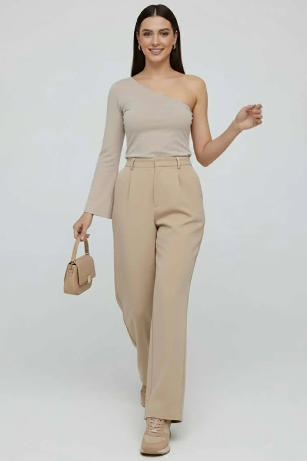 Tek Omuzlu Basic Bluz Vizon T4275