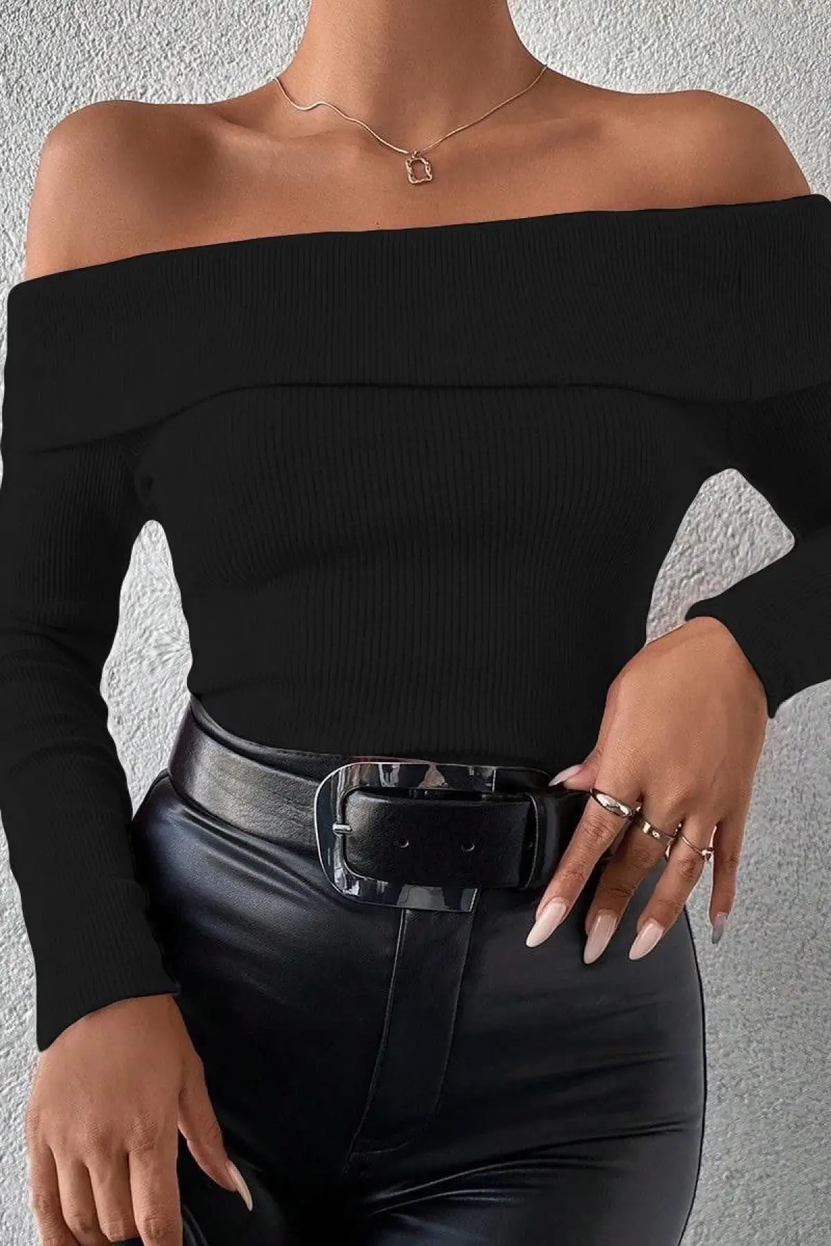 Uzun Kol Madonna Yaka Bluz Siyah