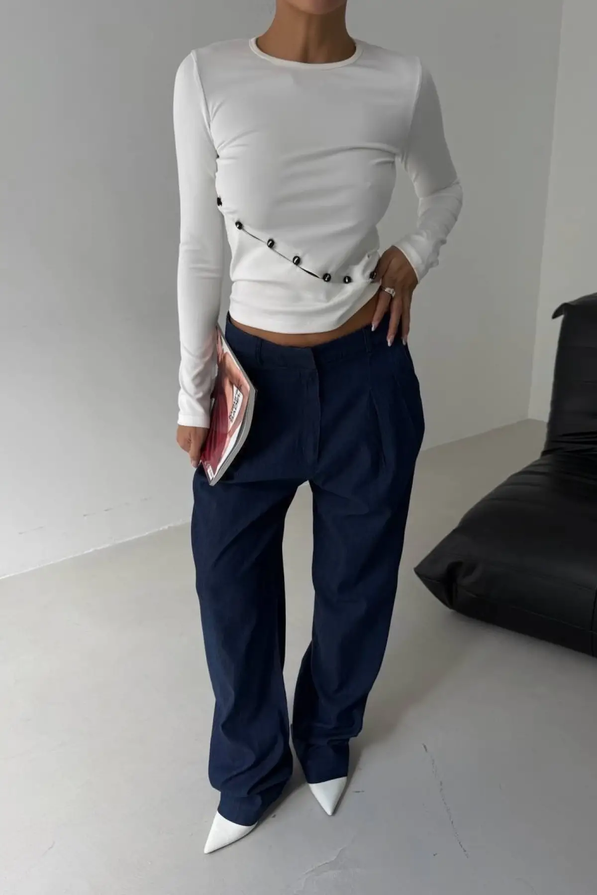 Omuz Detaylı Kollu Bluz Beyaz F2336