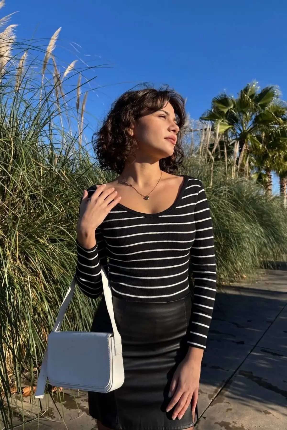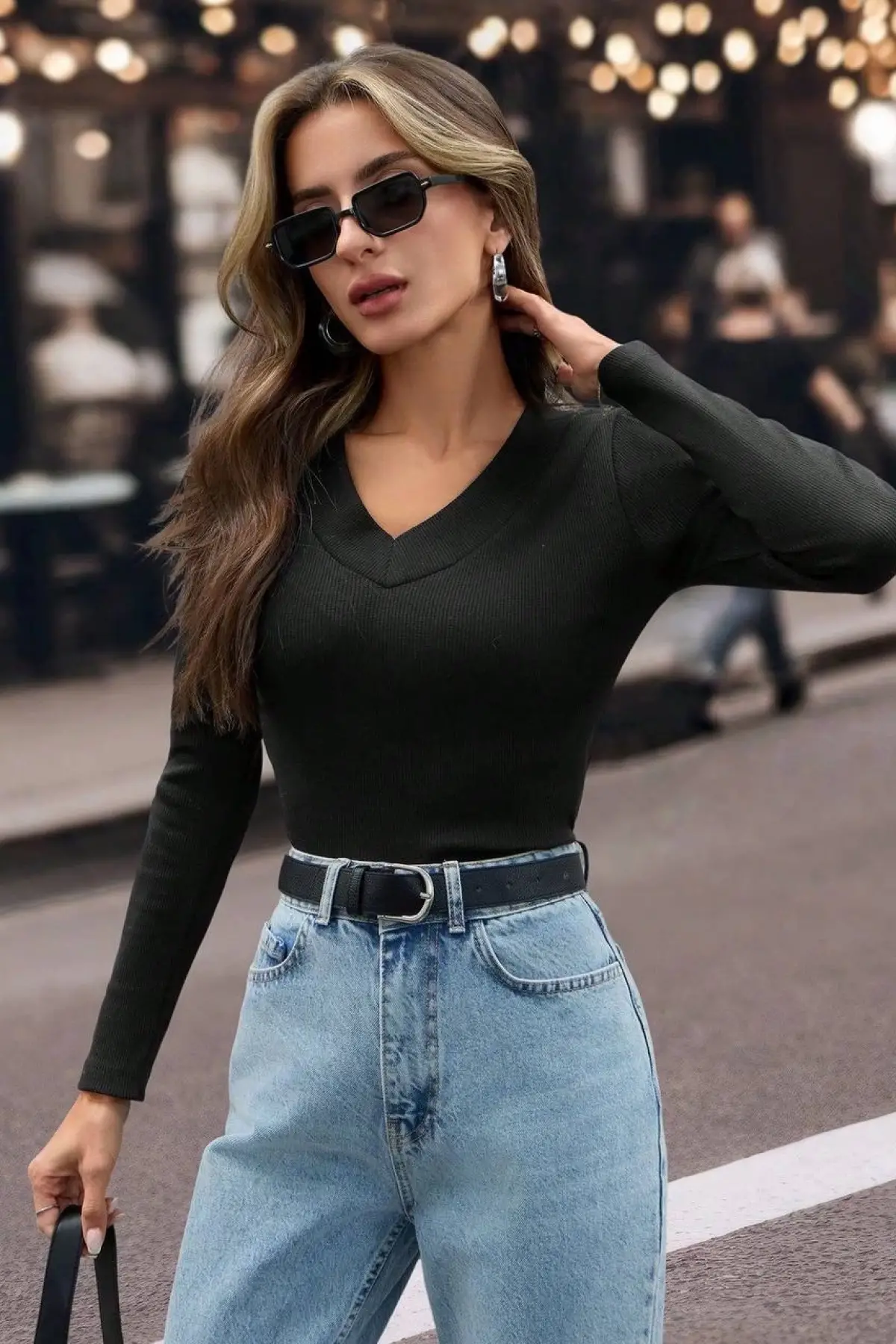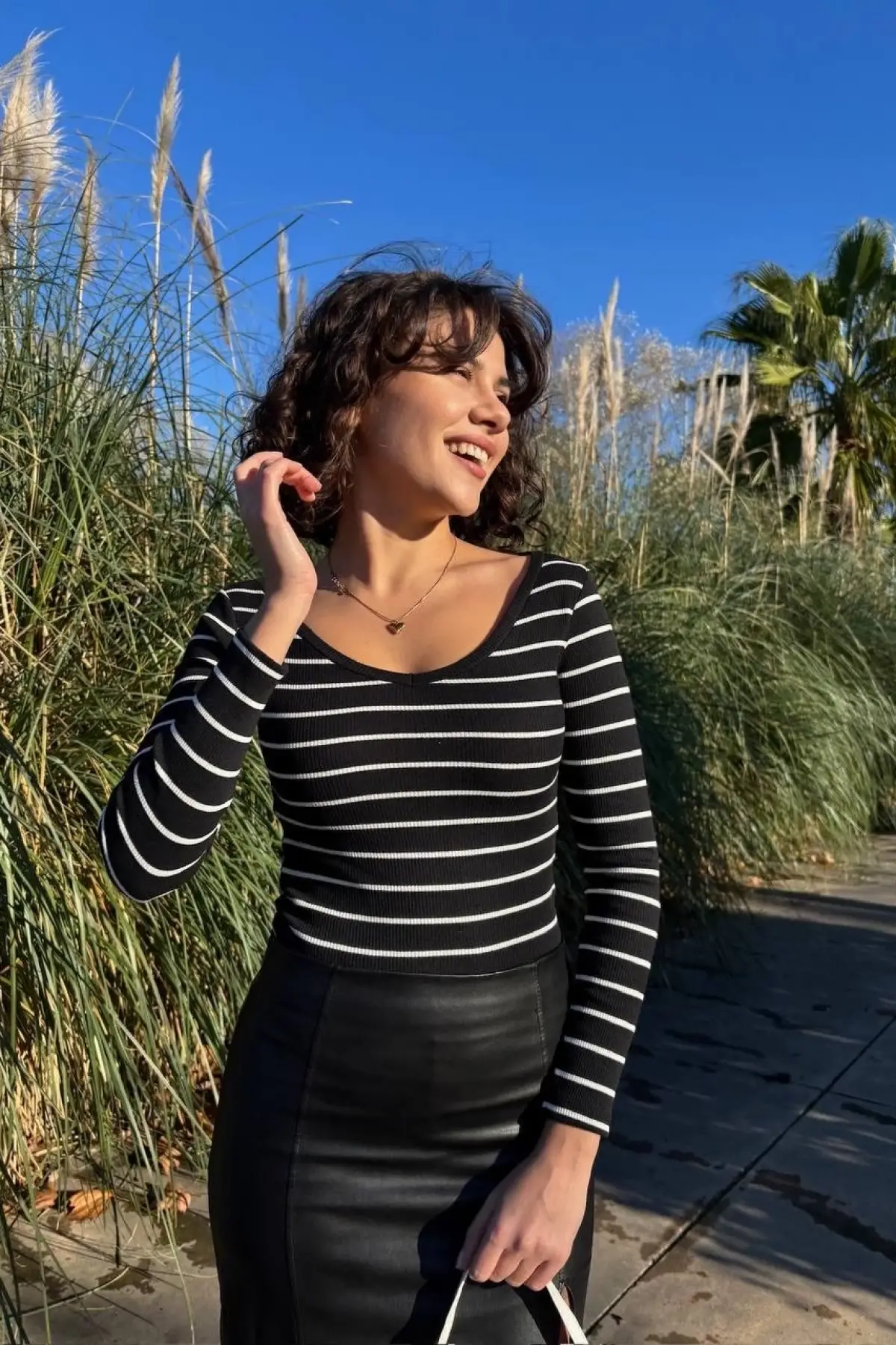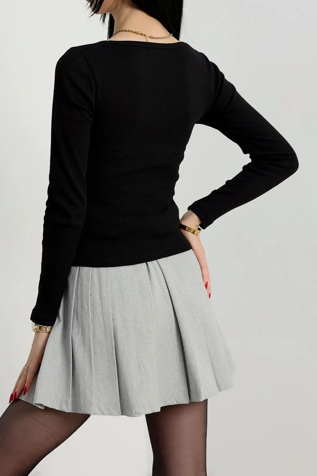 Kelebek Yaka Uzun Kol Bluz Siyah