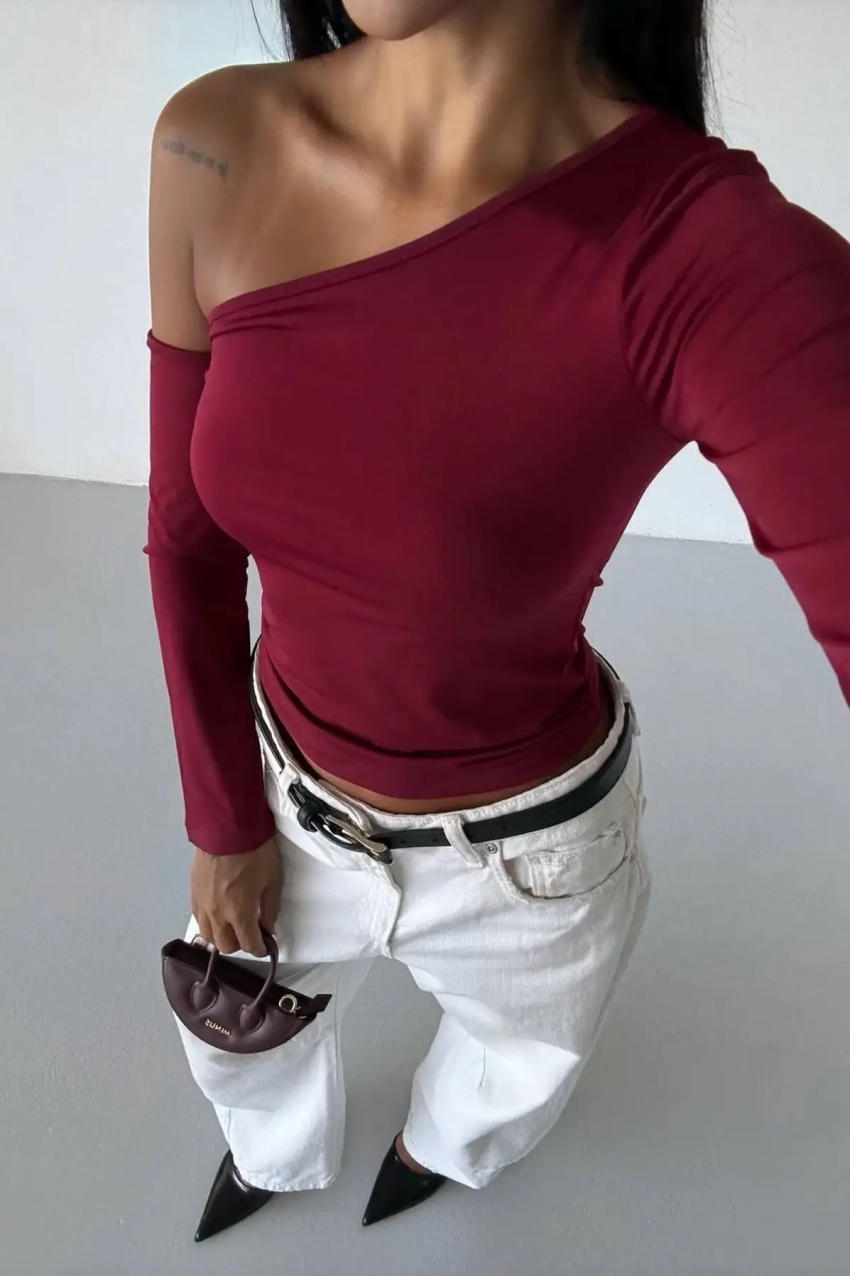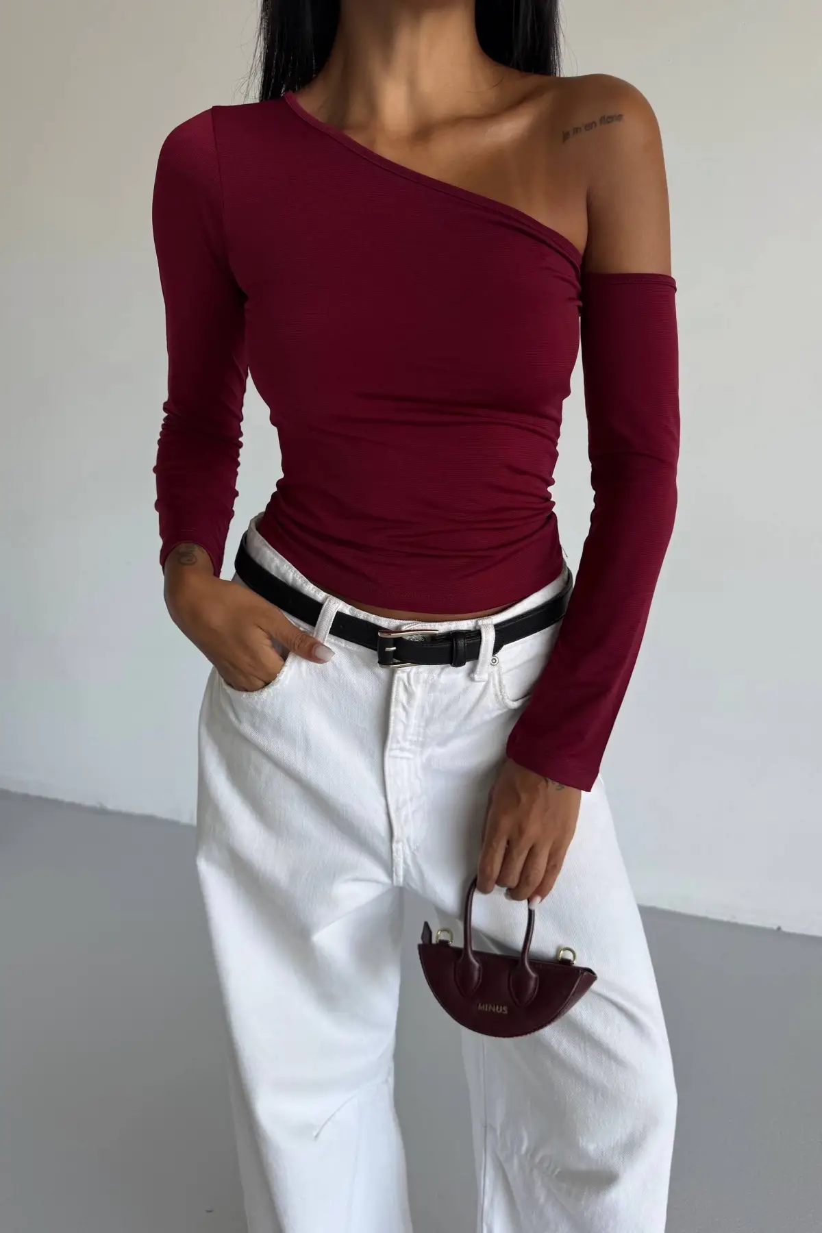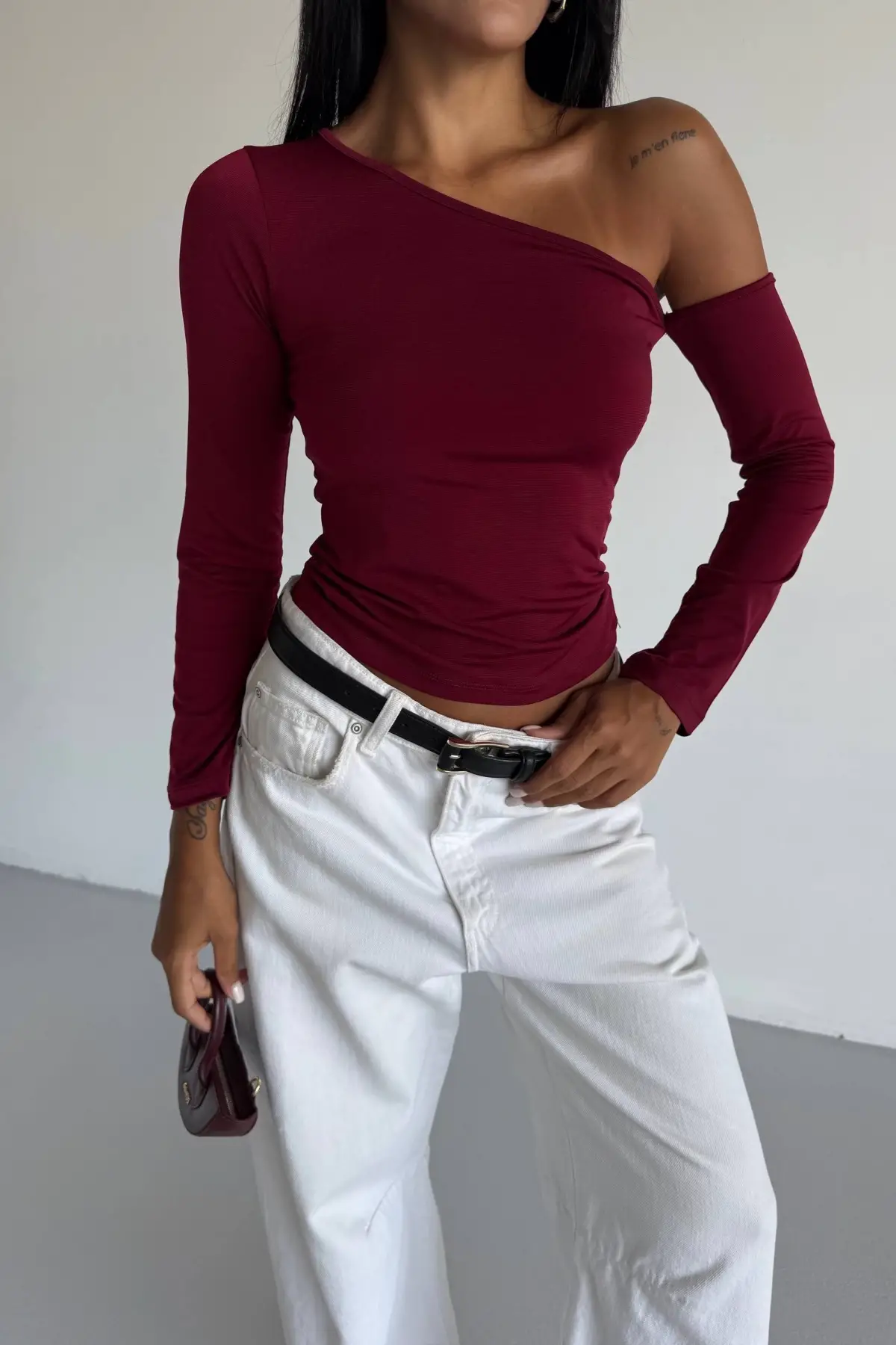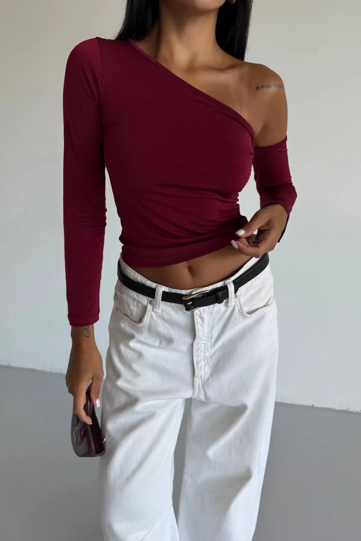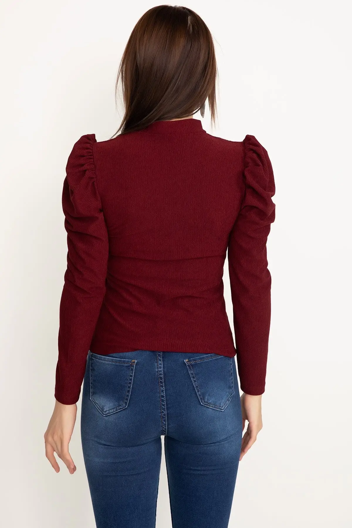 Omuz Detaylı Kollu Bluz Bordo F2336