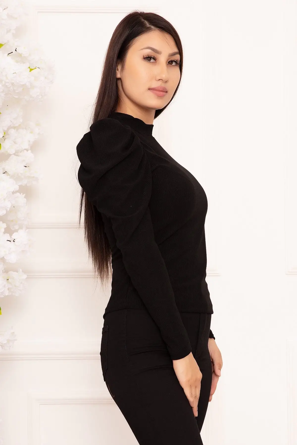 Omuz Detaylı Kollu Bluz Siyah F2336
