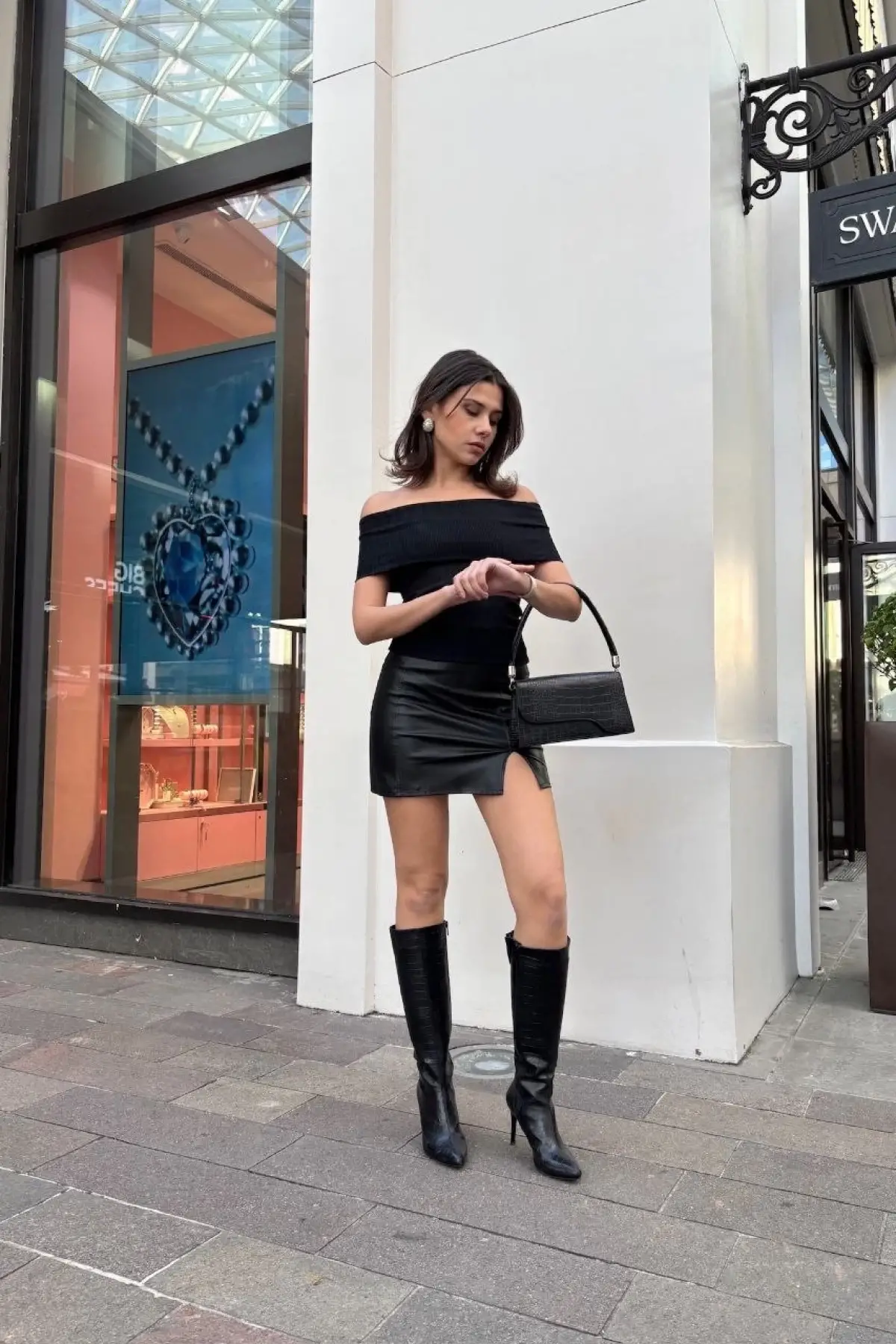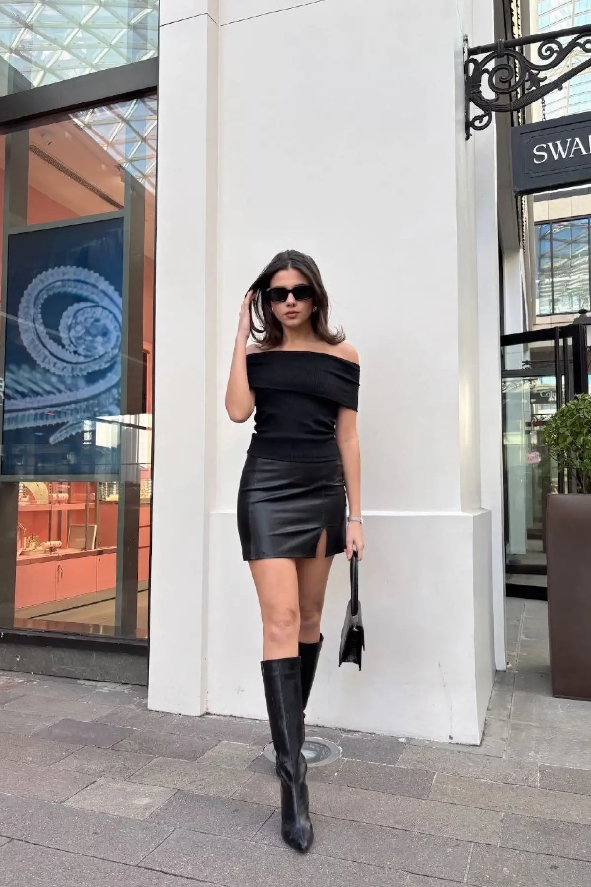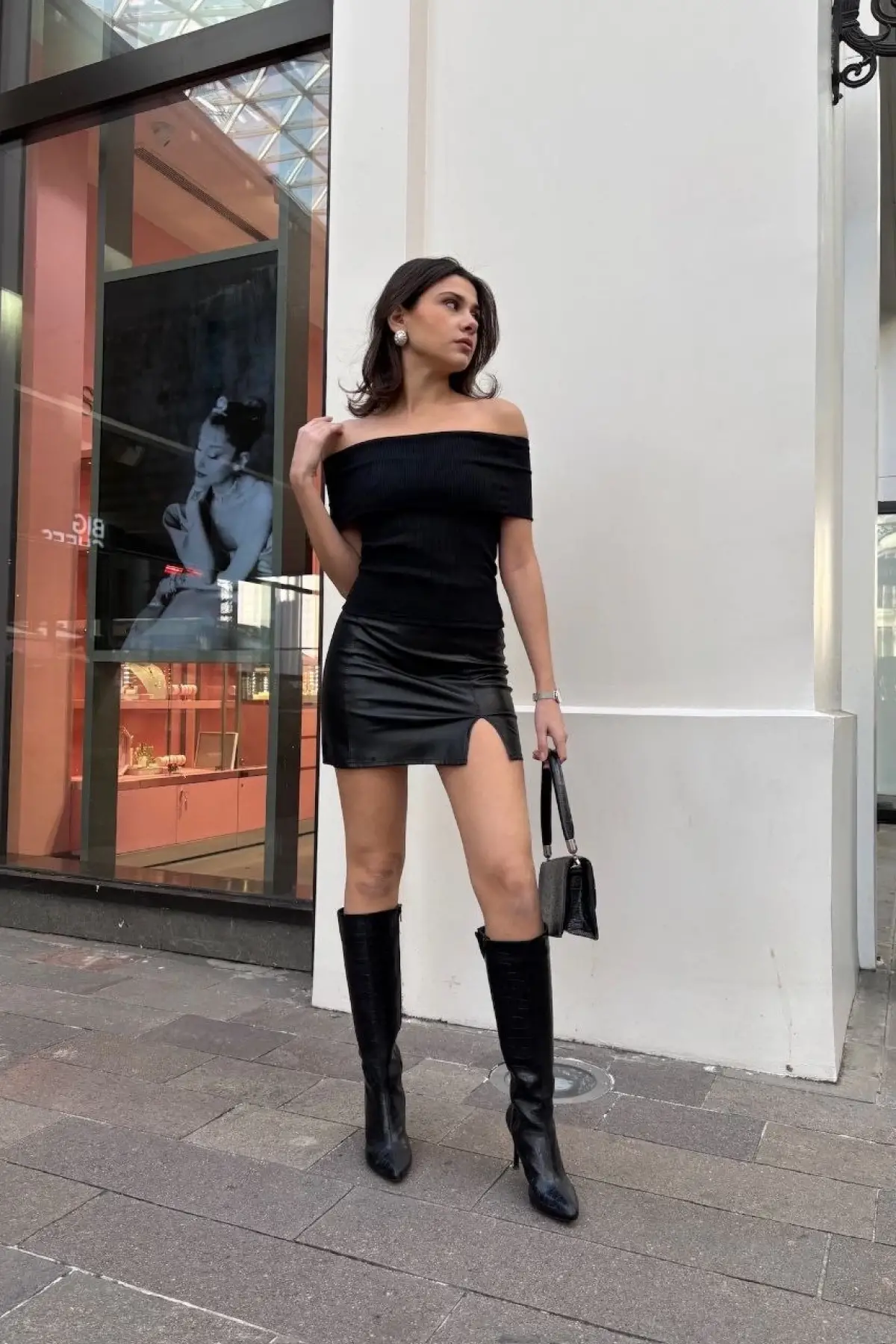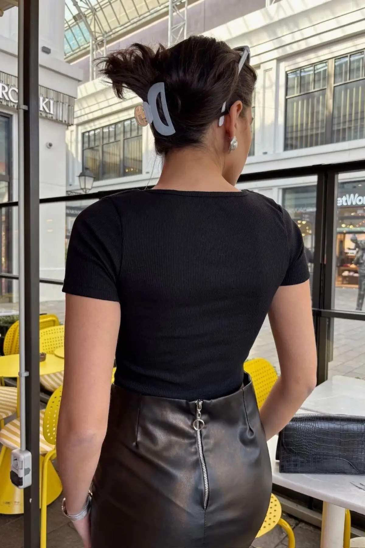 Kaşkorse Yaka Fermuarlı Bluz Siyah