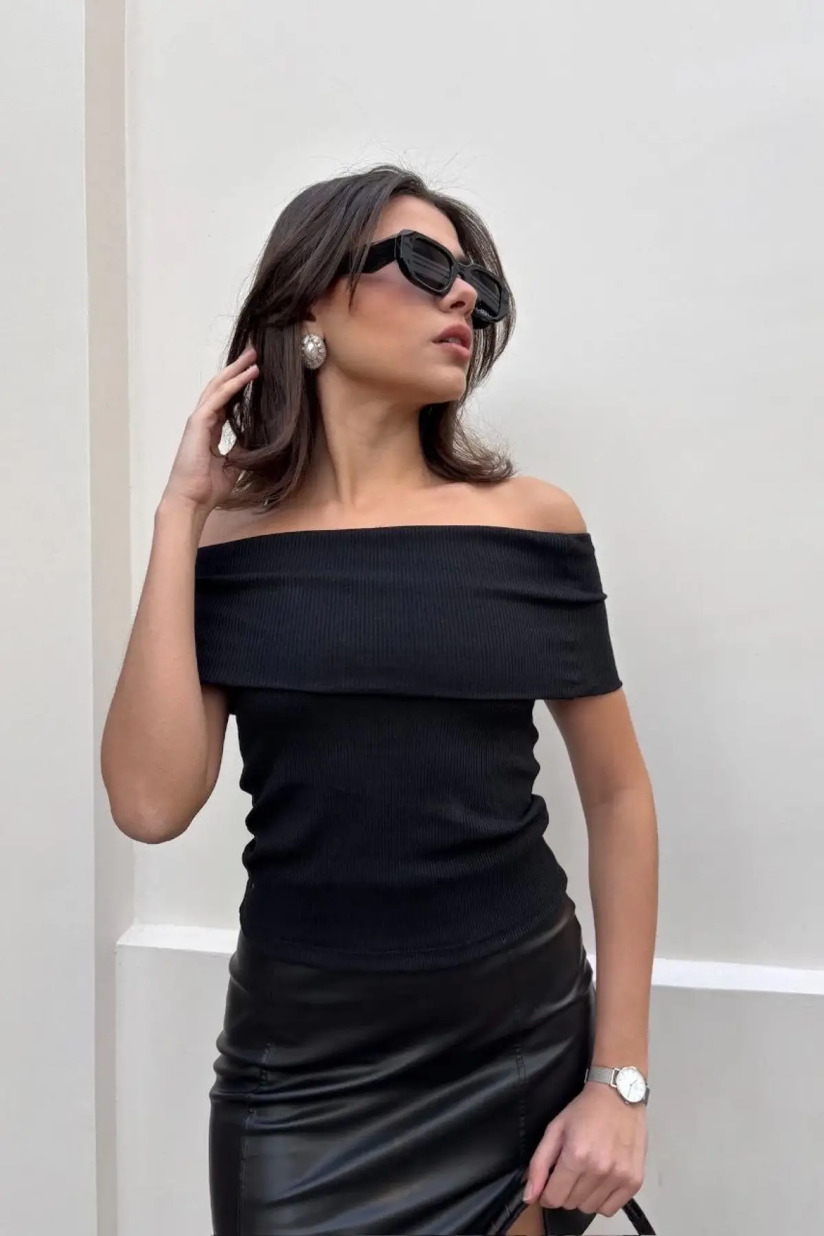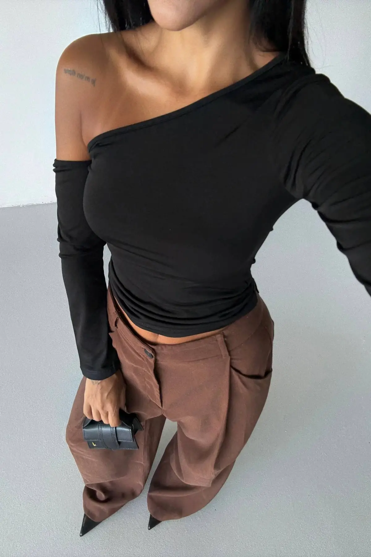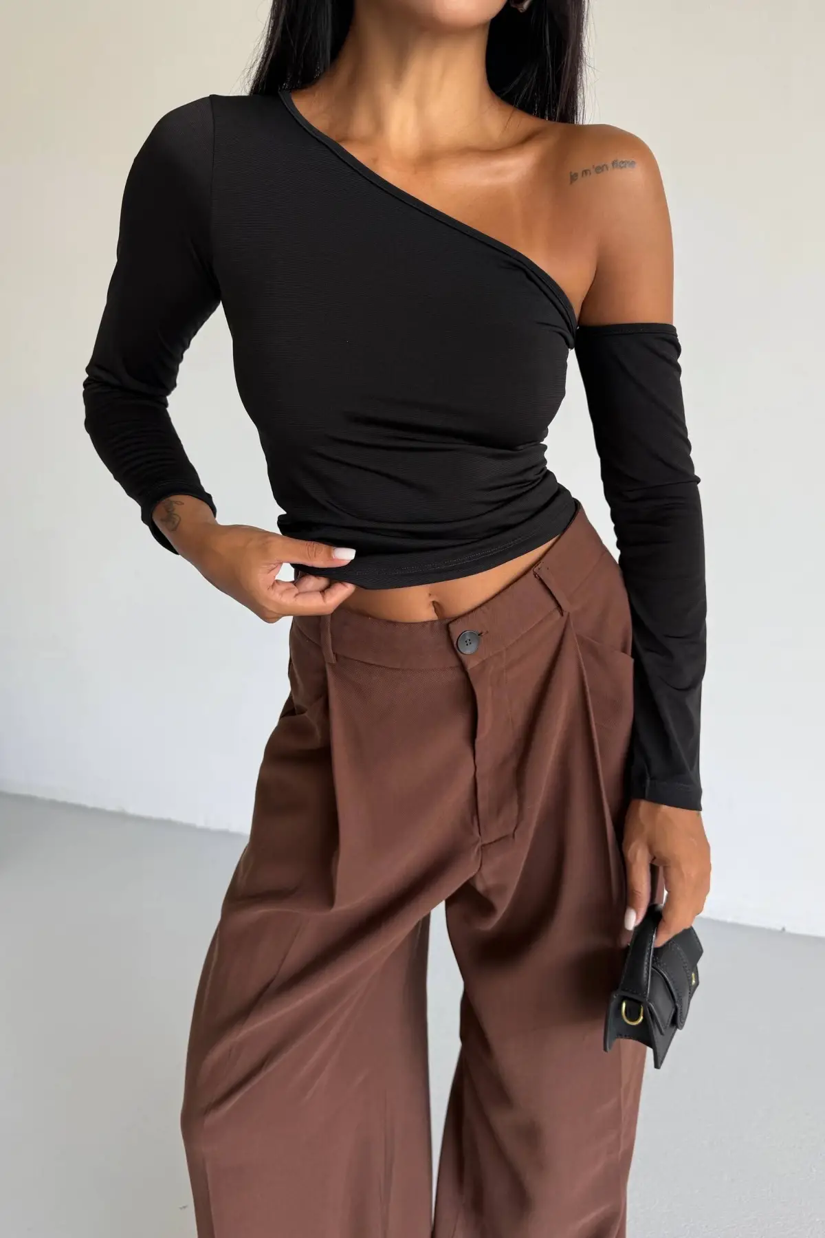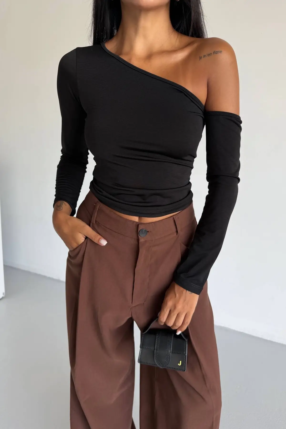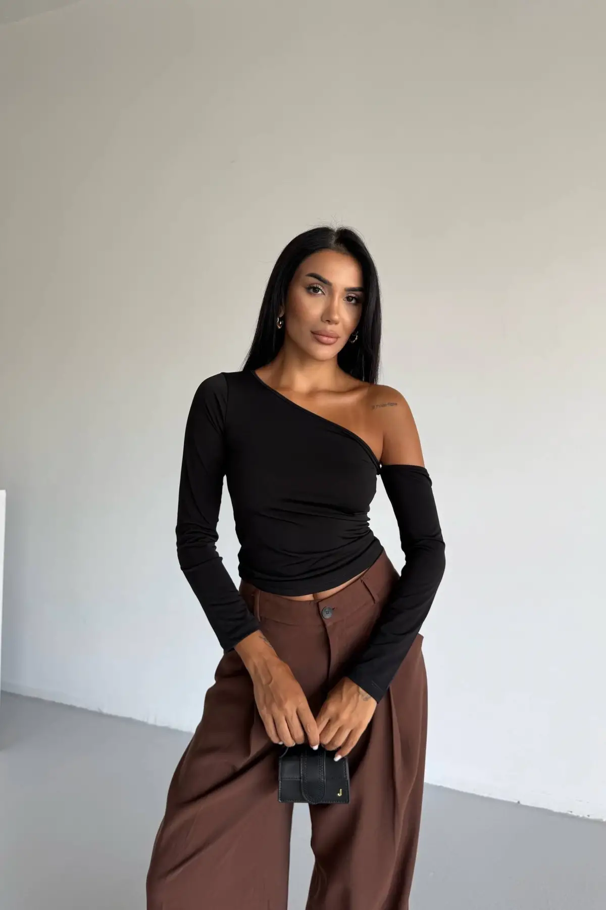 Omuz Detaylı Kollu Bluz Siyah F2336