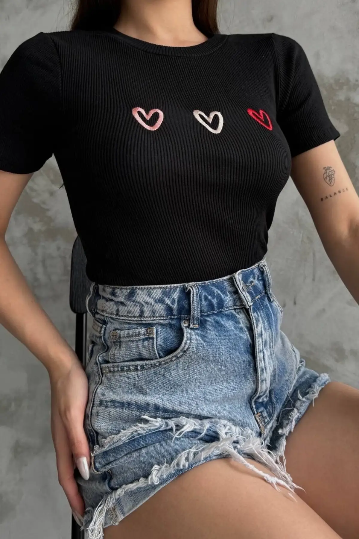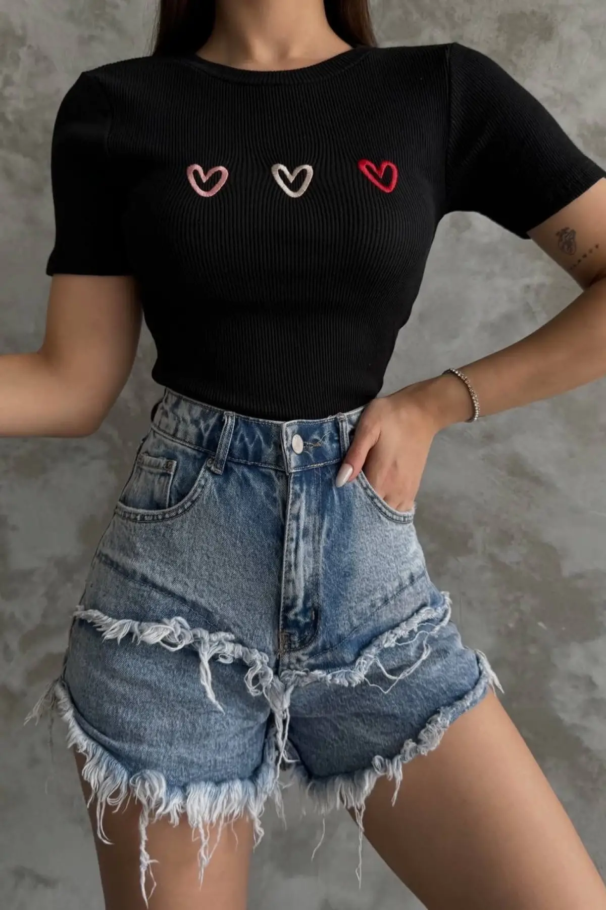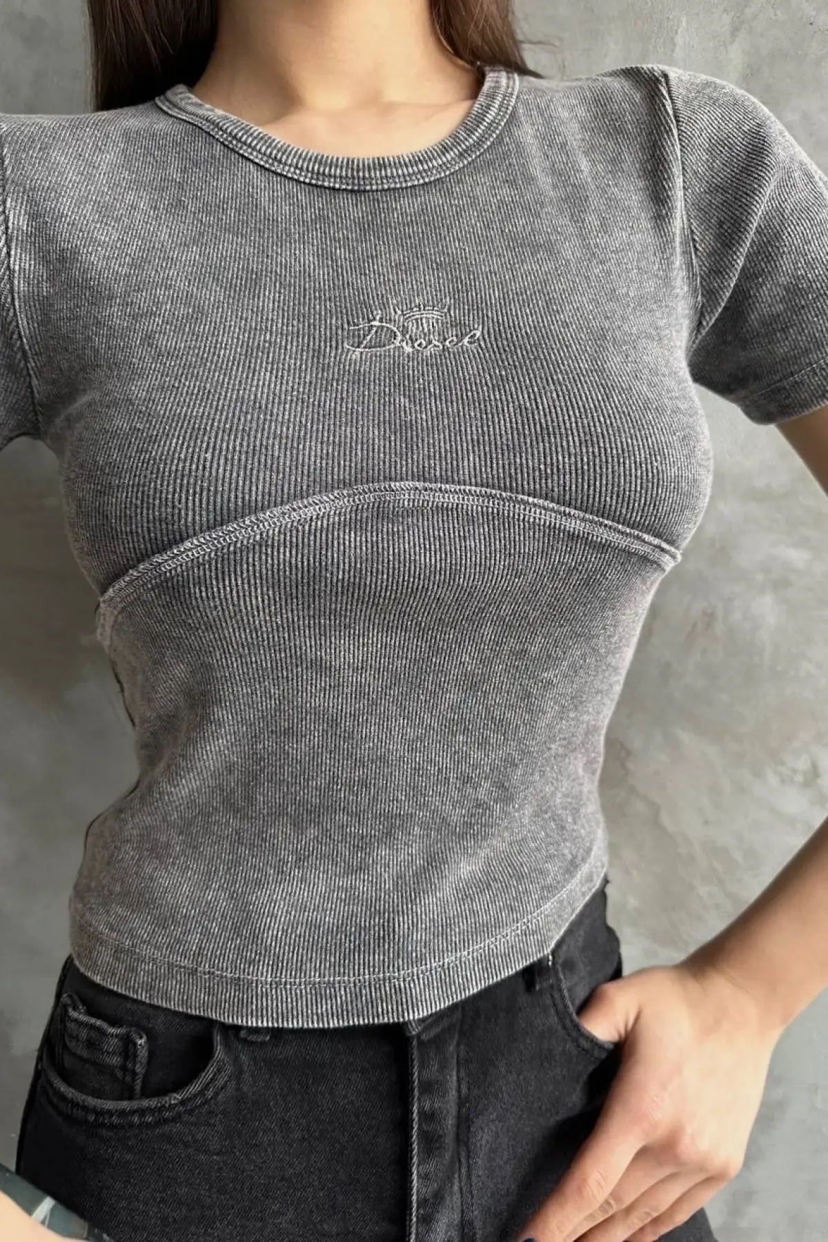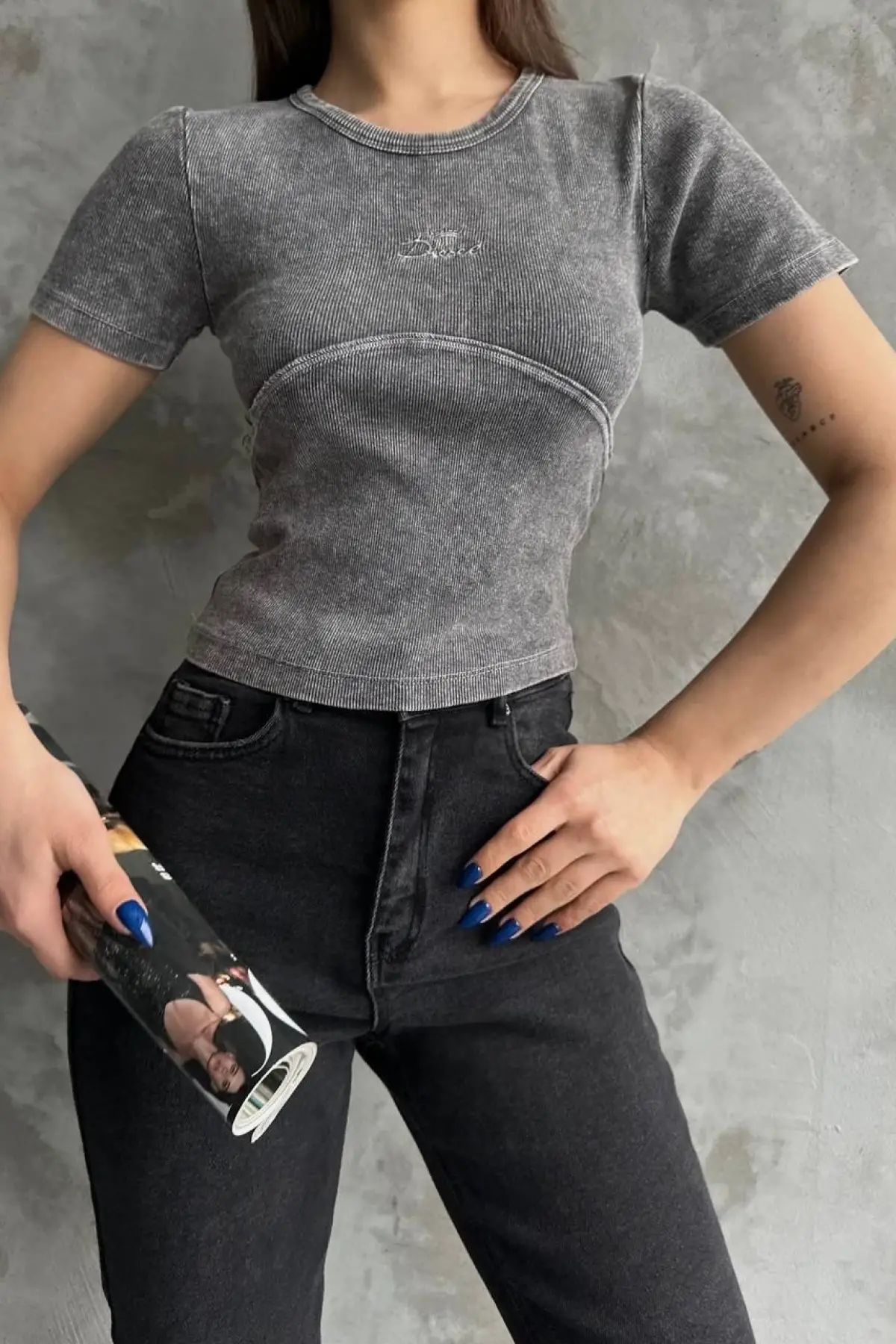 Nakış İşlemeli Asit Yıkamalı Bluz