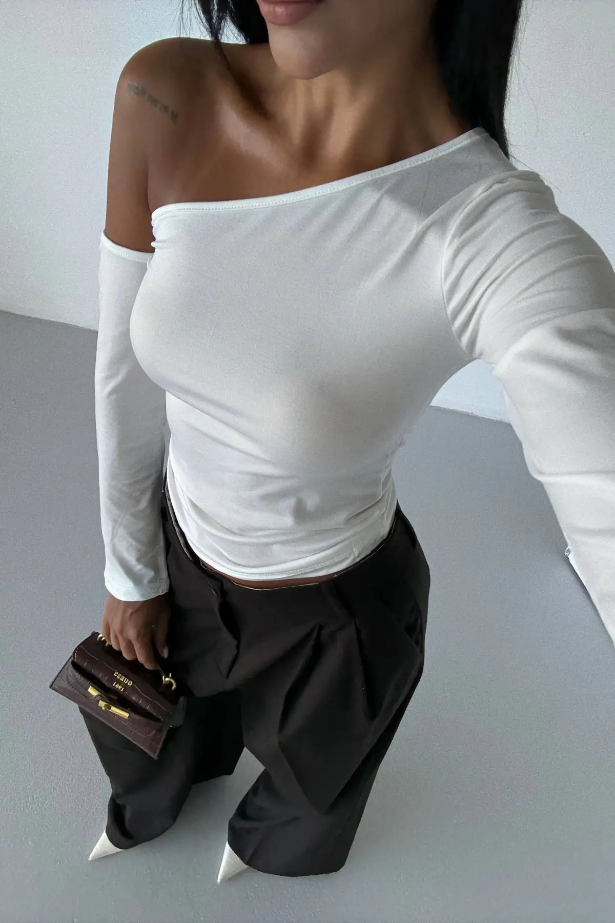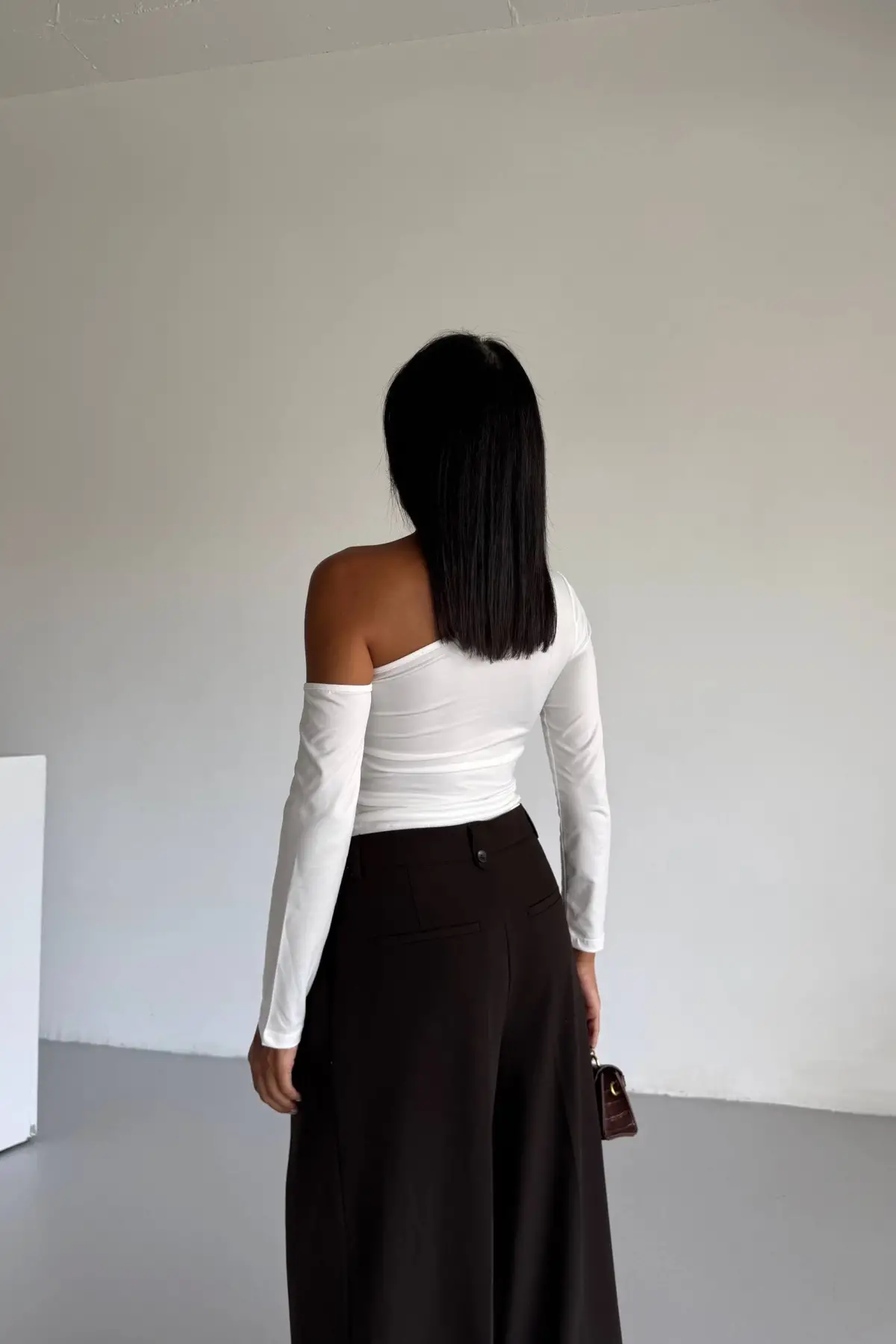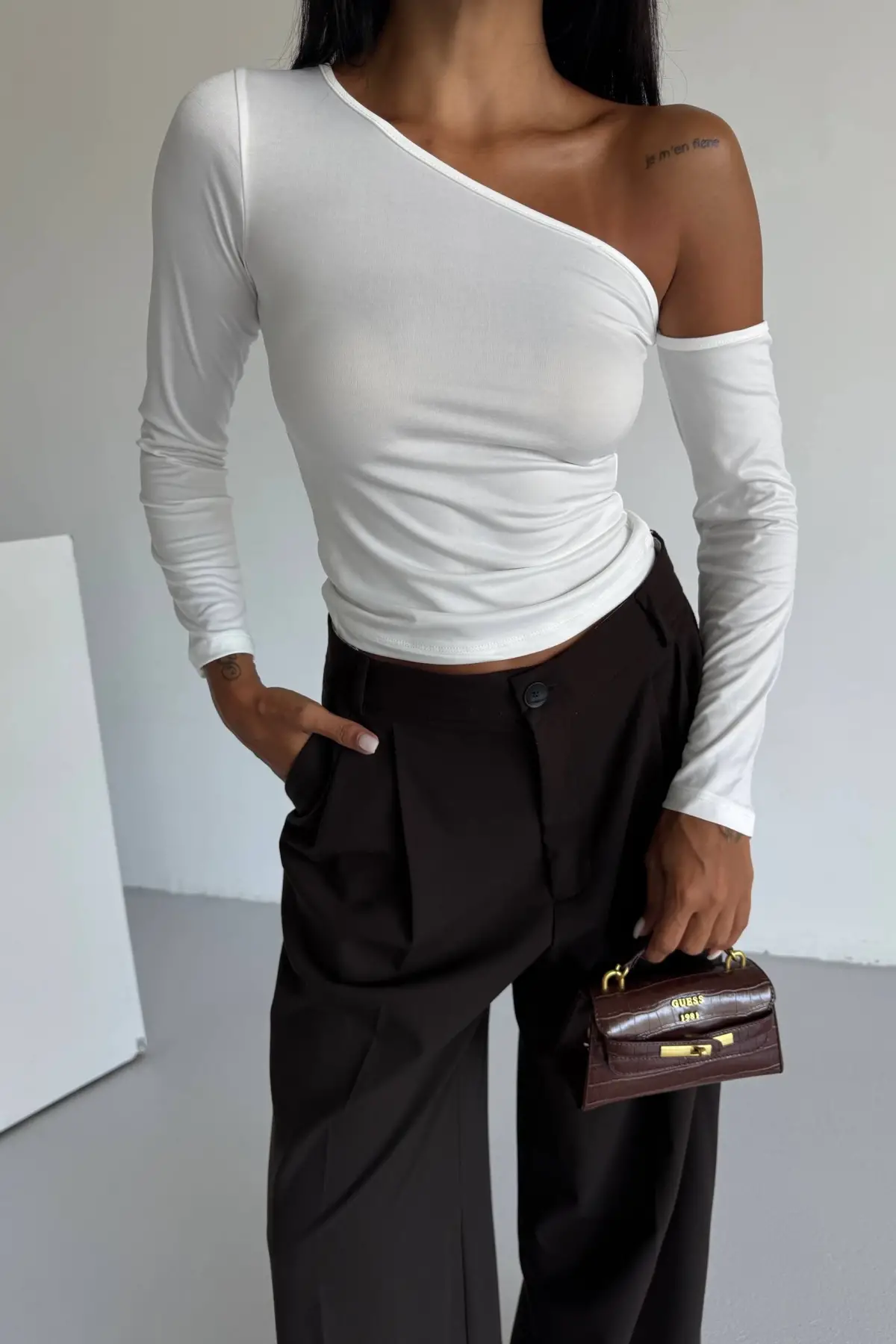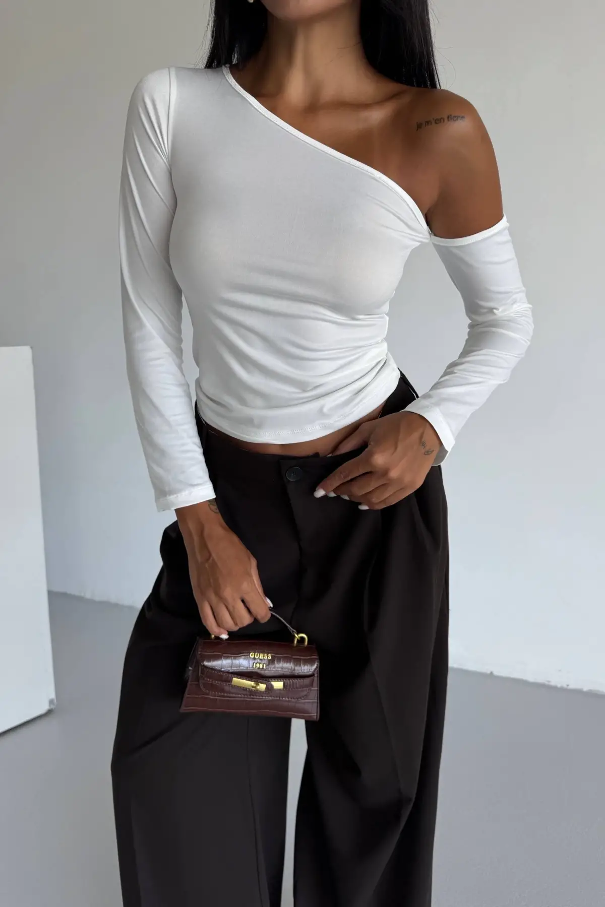 Omuz Detaylı Kollu Bluz Beyaz F2336