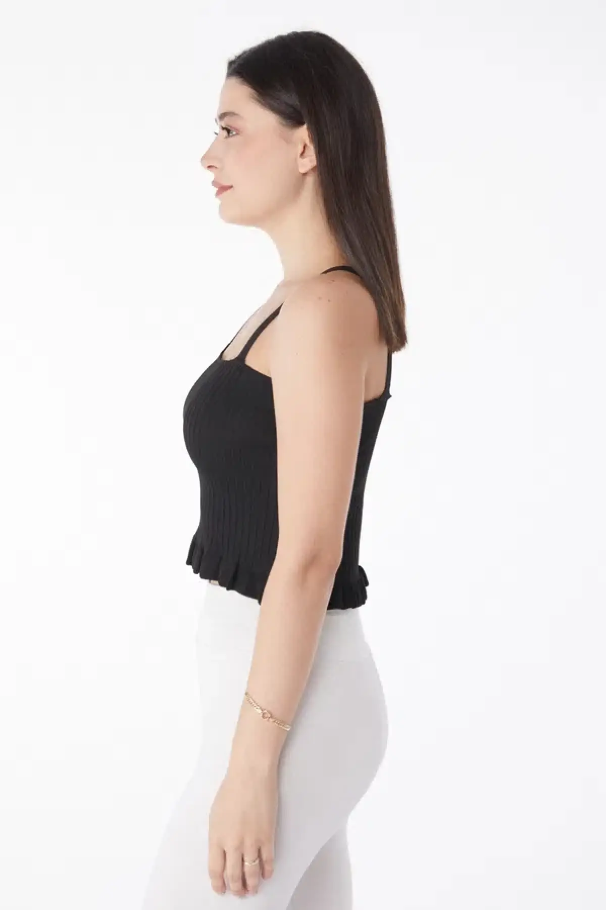 Kare Yaka Garni Detay İspanyol Kol Bluz Siyah A3105