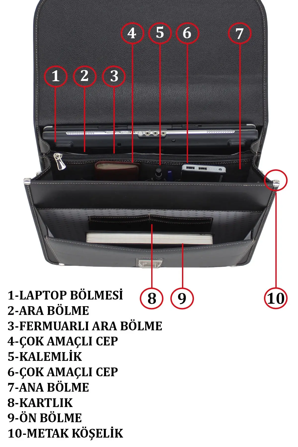 Evrak çantası: Ofis stili için vazgeçilmezdir. Belgeler, tablet, kalem ve not defteri için idealdir.