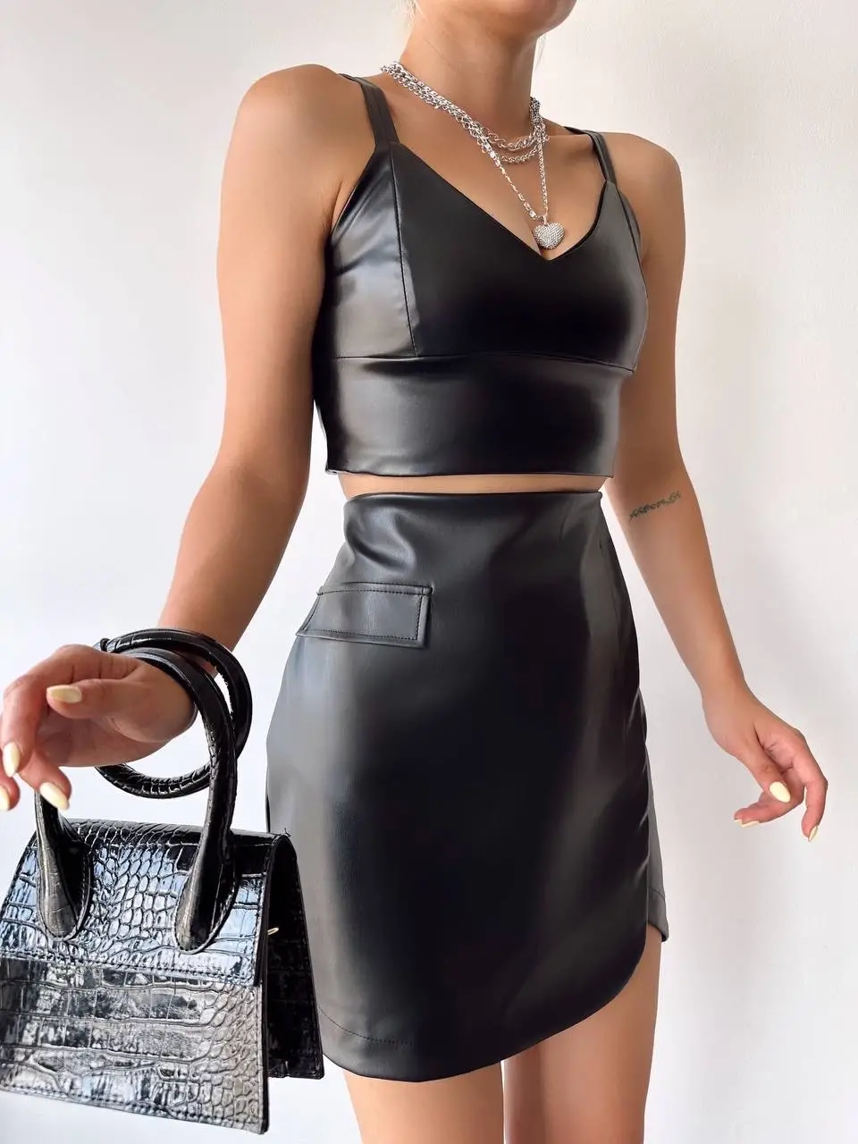Şıklık ve zarafetin buluştuğu Cep Detaylı Oval Kapaklı Deri Etek Siyah, gardırobunuzun vazgeçilmezi olmaya aday!