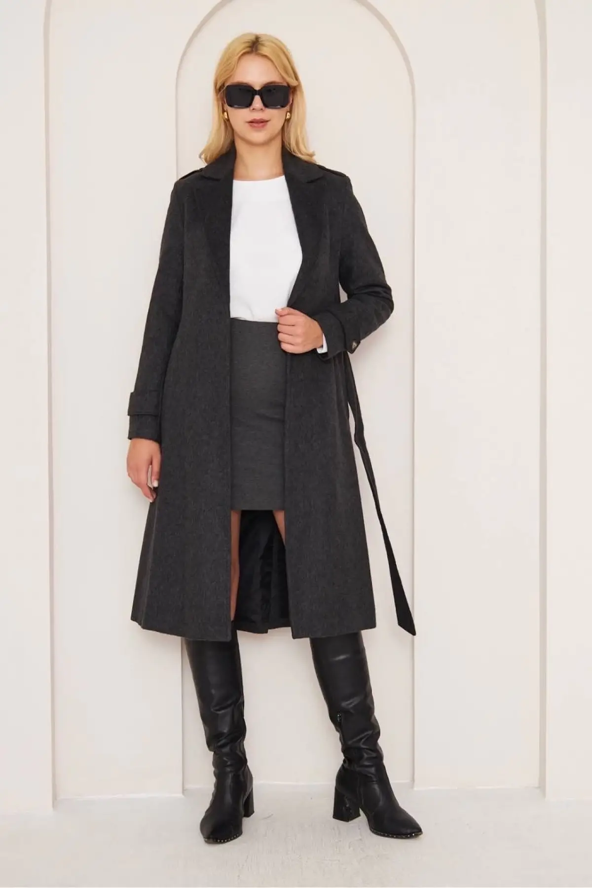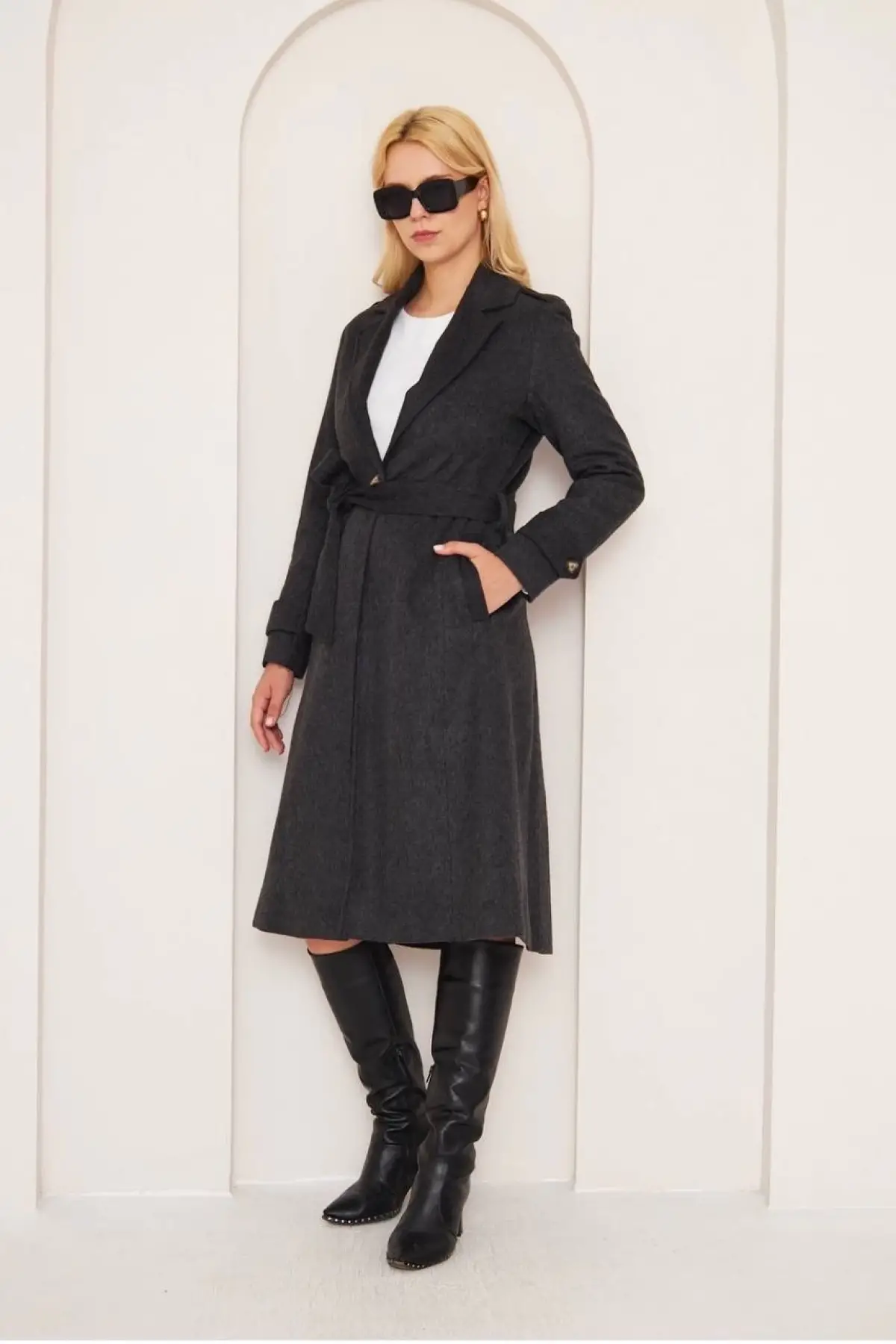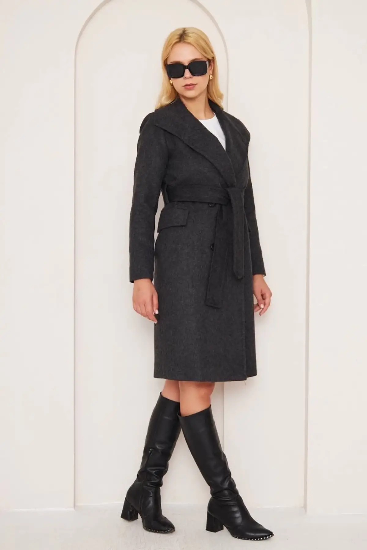 Kaliteli işçilik ve şık görünümü ile her mevsim gardırobunuzda önemli bir yere sahip olacak Cepli Kuşaklı Kaşe Kaban Antrasit ST26458'i hemen sepetinize ekleyin!