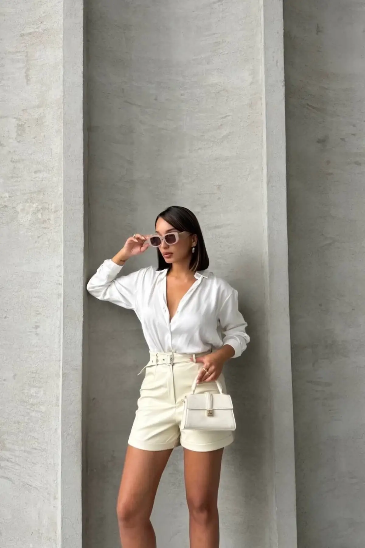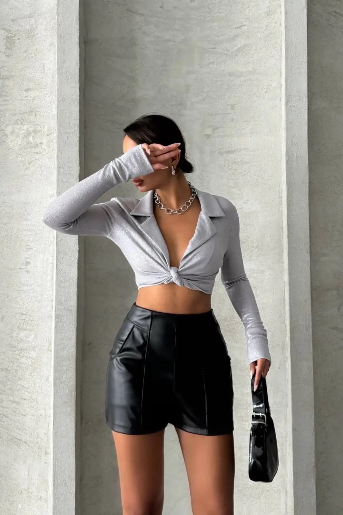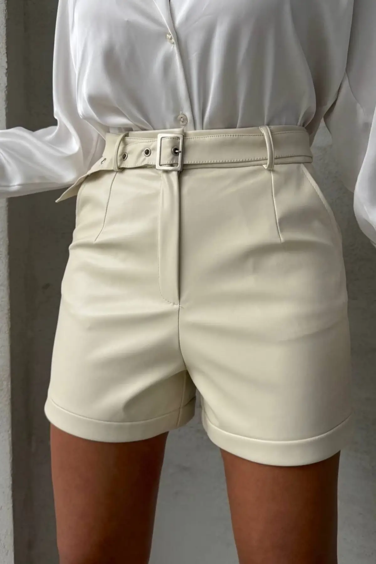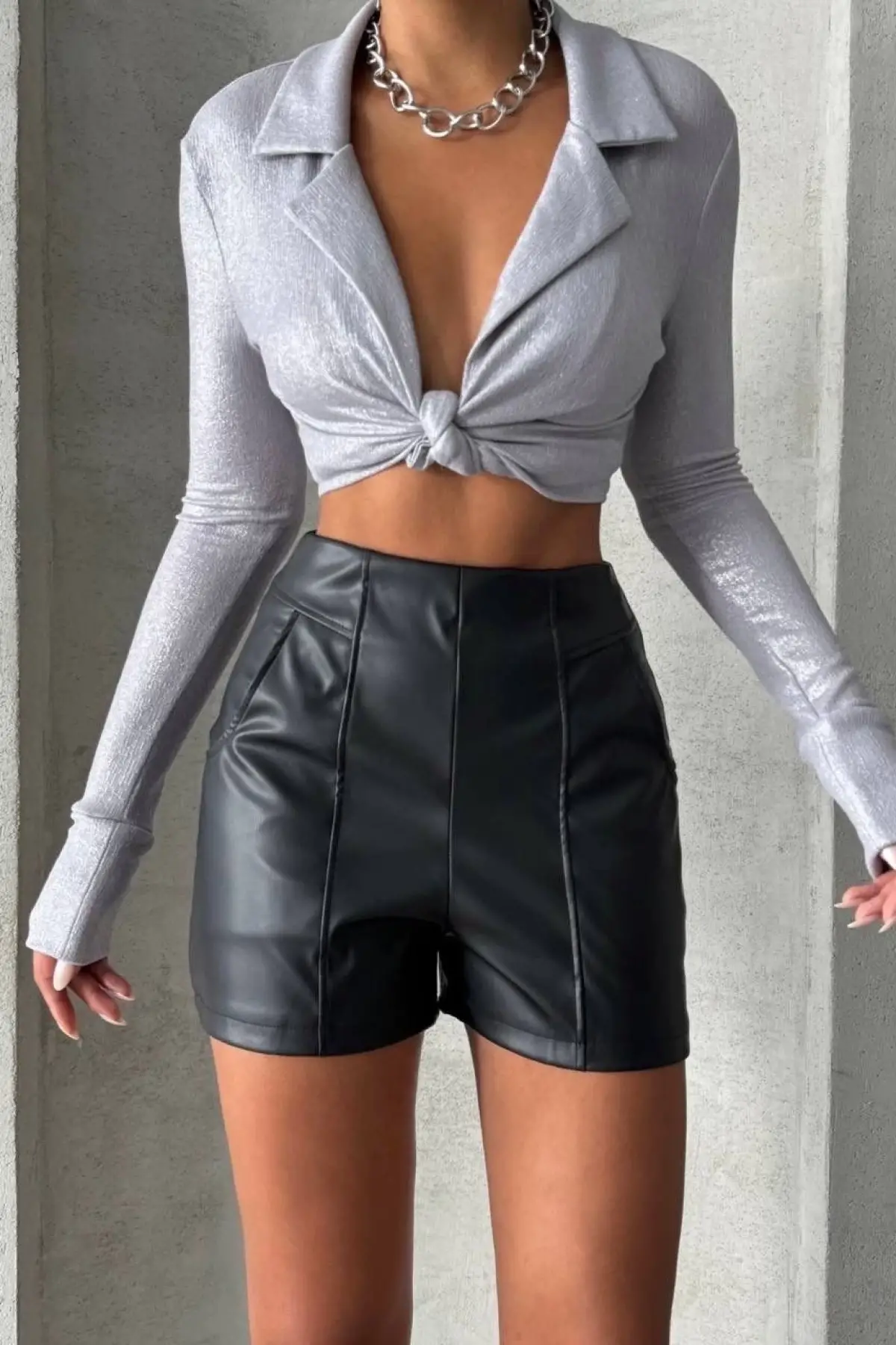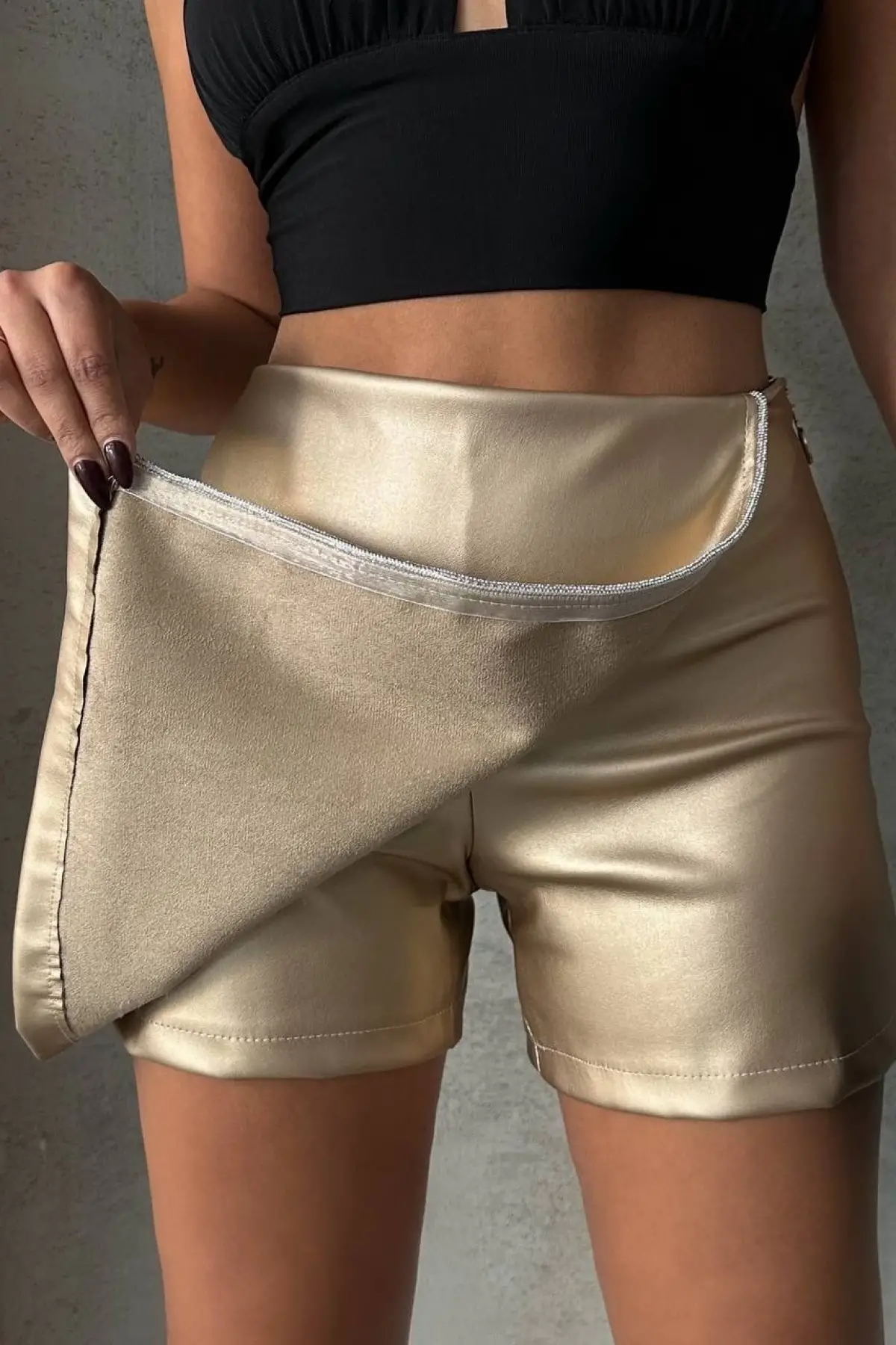 Çift fermuar detaylarıyla şıklığı ve rahatlığı bir arada sunan Kahve Deri Şort ile tarzınızı yansıtın.