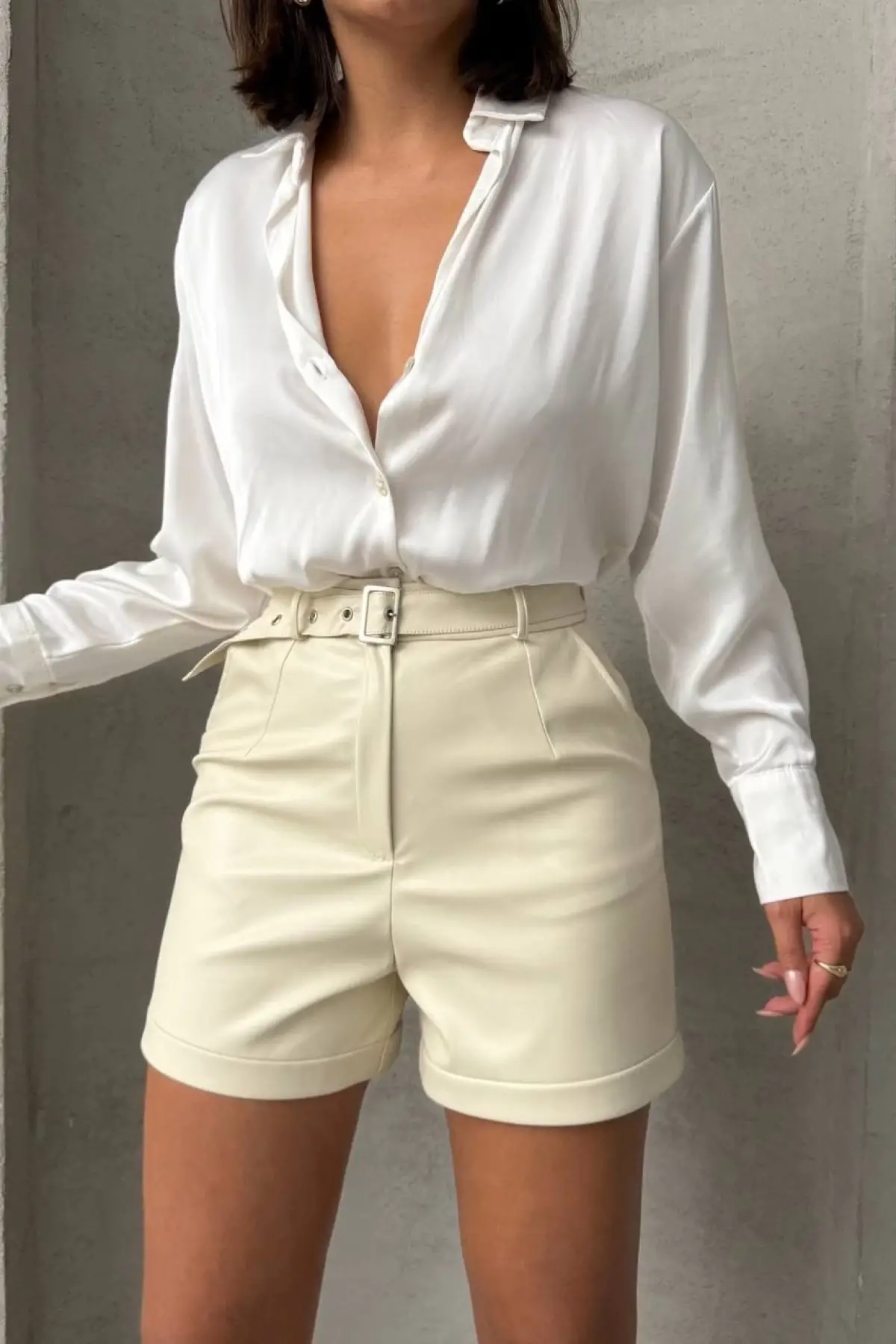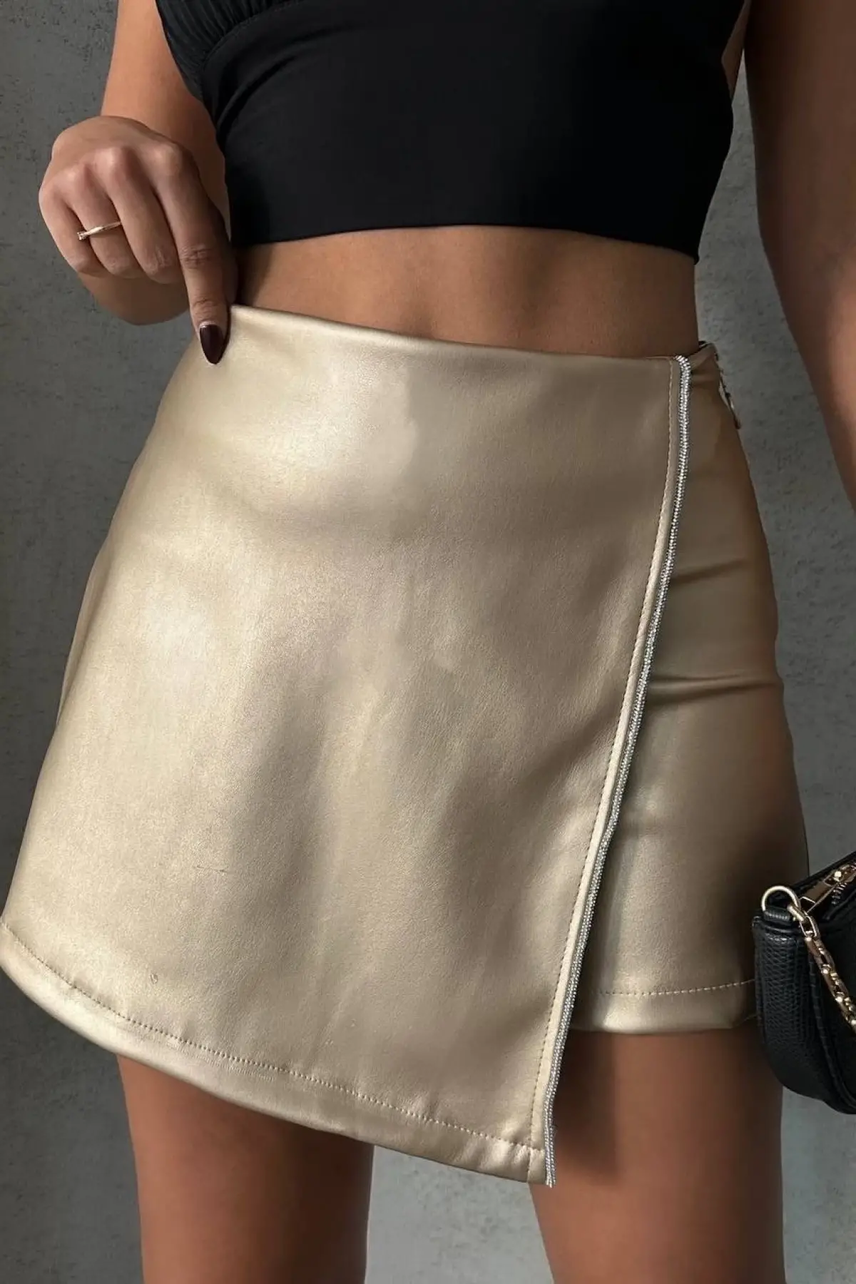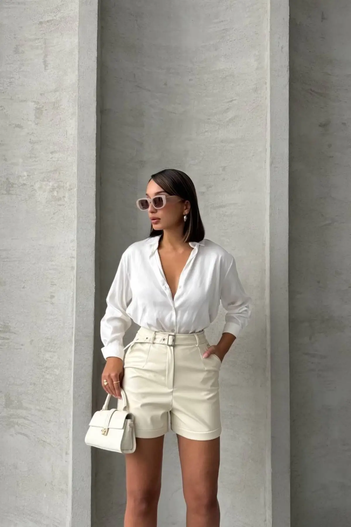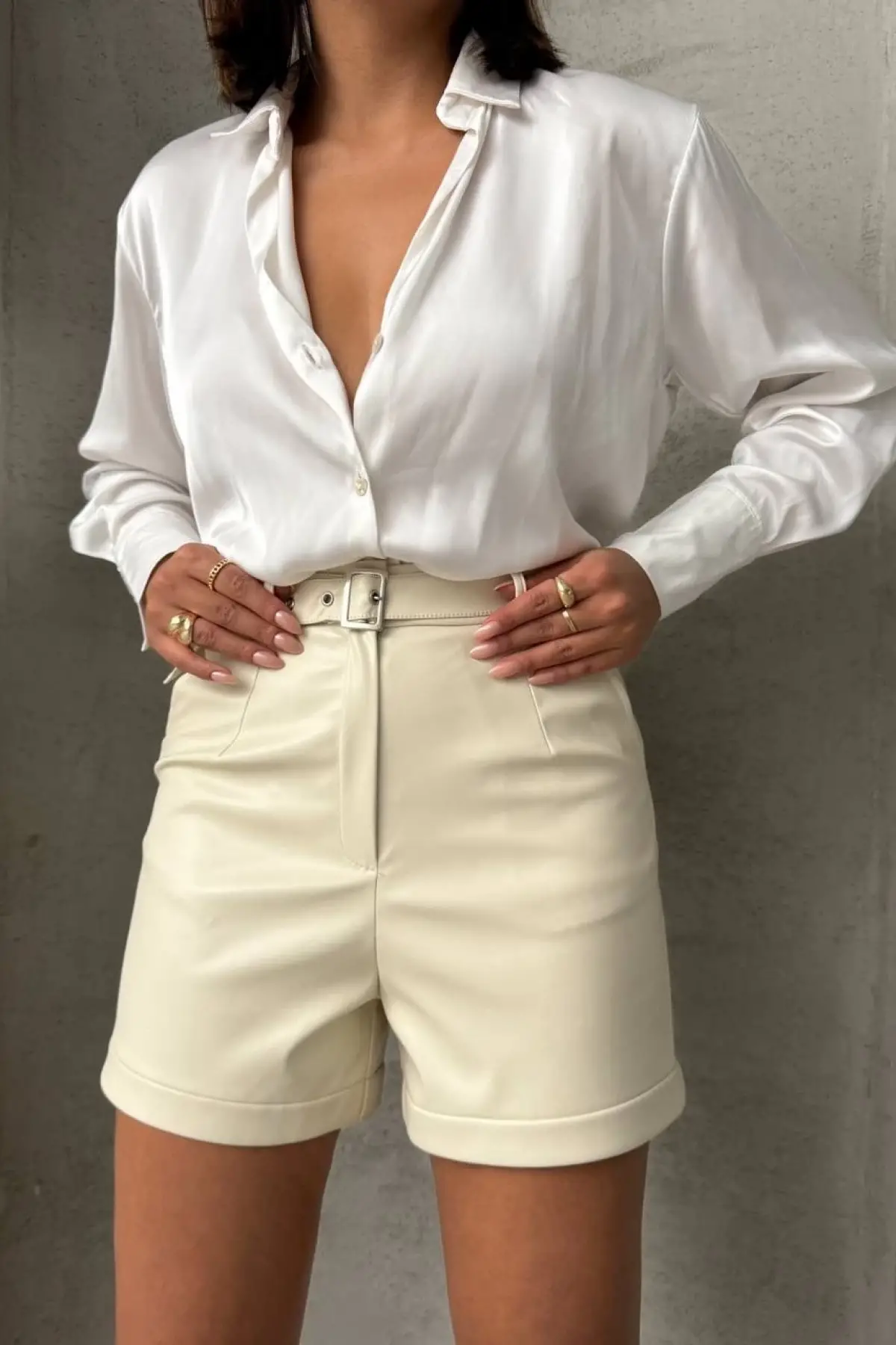 Çift fermuar detaylarıyla şıklığı ve rahatlığı bir arada sunan Kahve Deri Şort ile tarzınızı yansıtın.