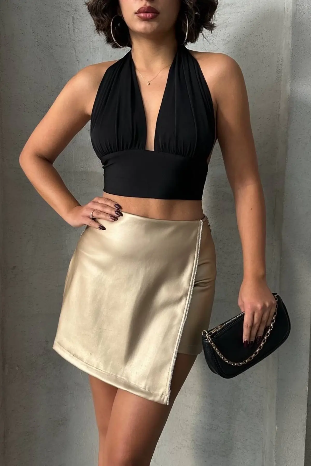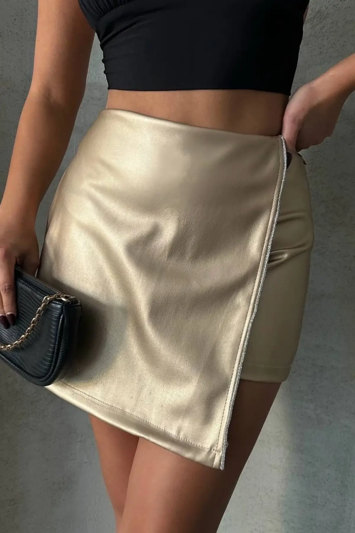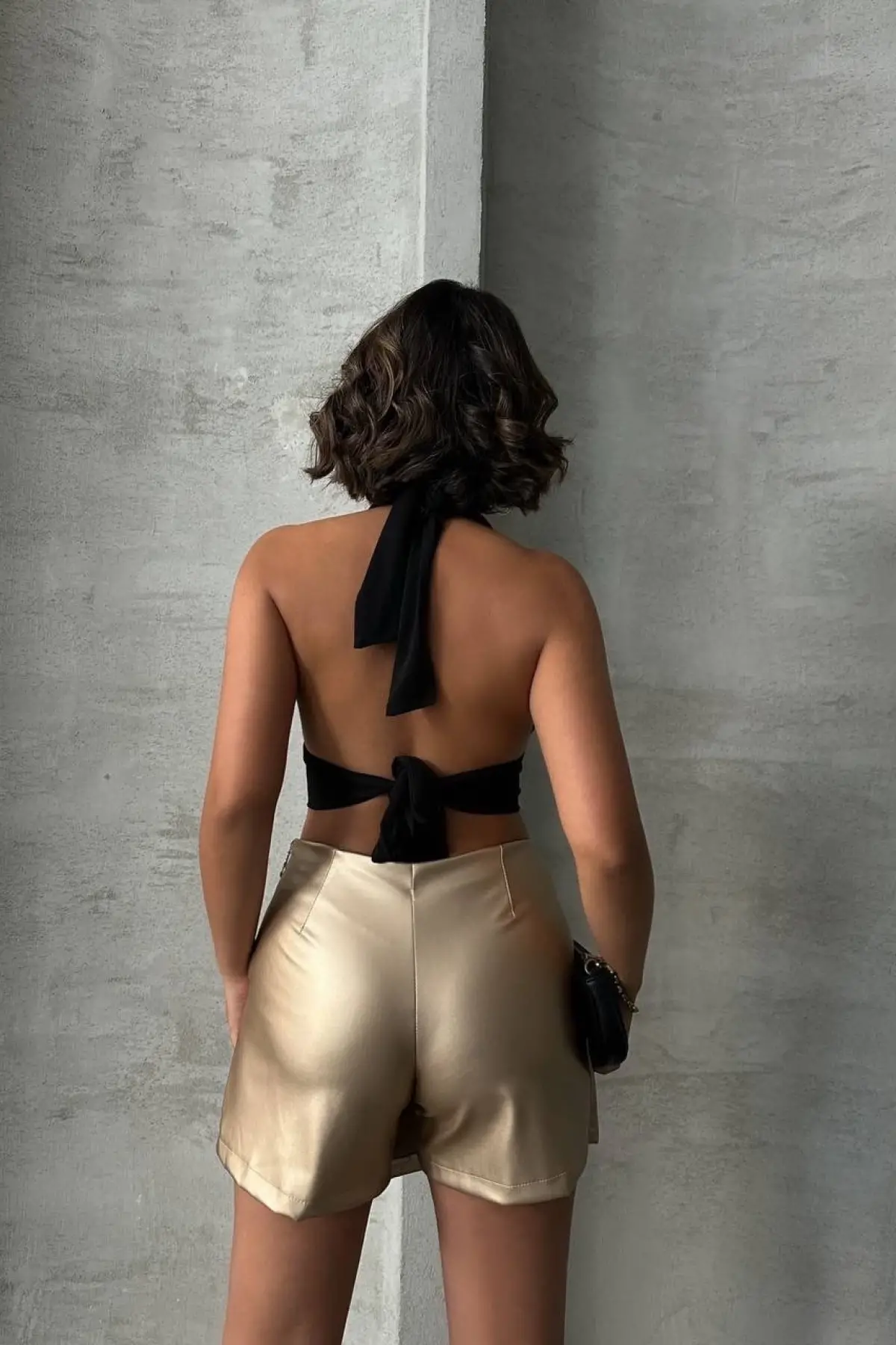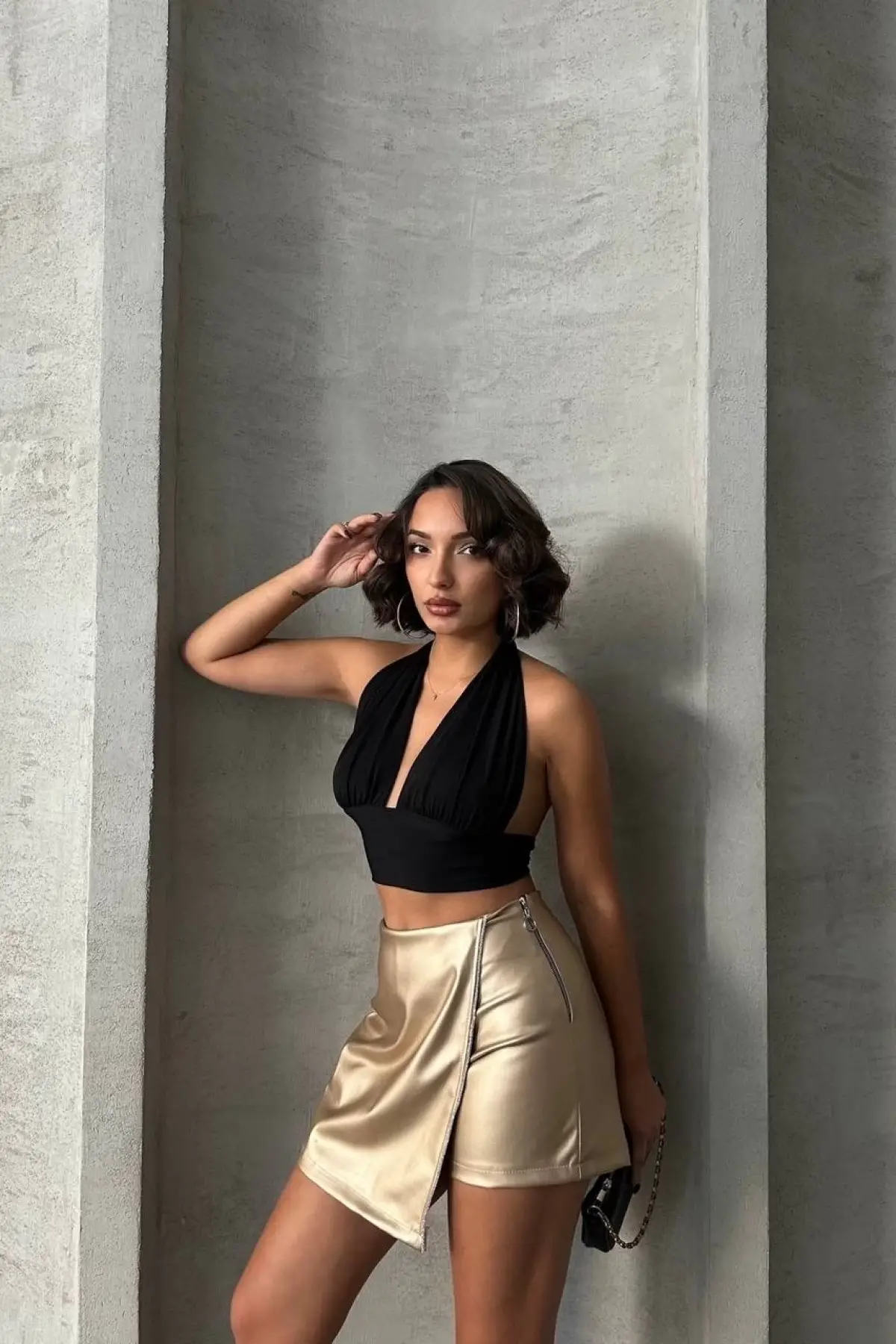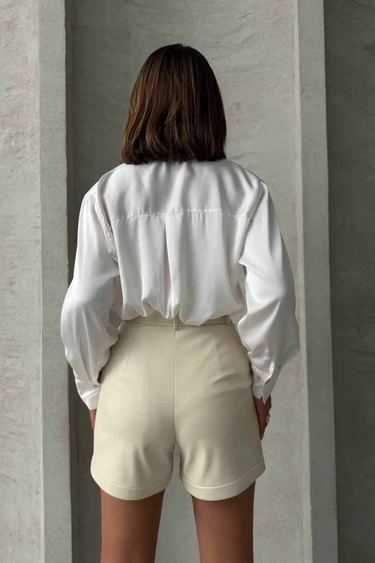 Çift fermuar detaylarıyla şıklığı ve rahatlığı bir arada sunan Kahve Deri Şort ile tarzınızı yansıtın.
