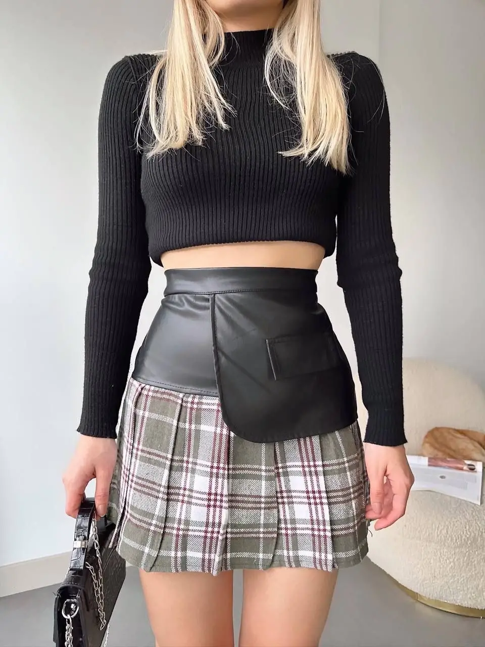 Deri garnili cepli ekose etek, gardırobunuzun vazgeçilmez parçası olmaya aday!