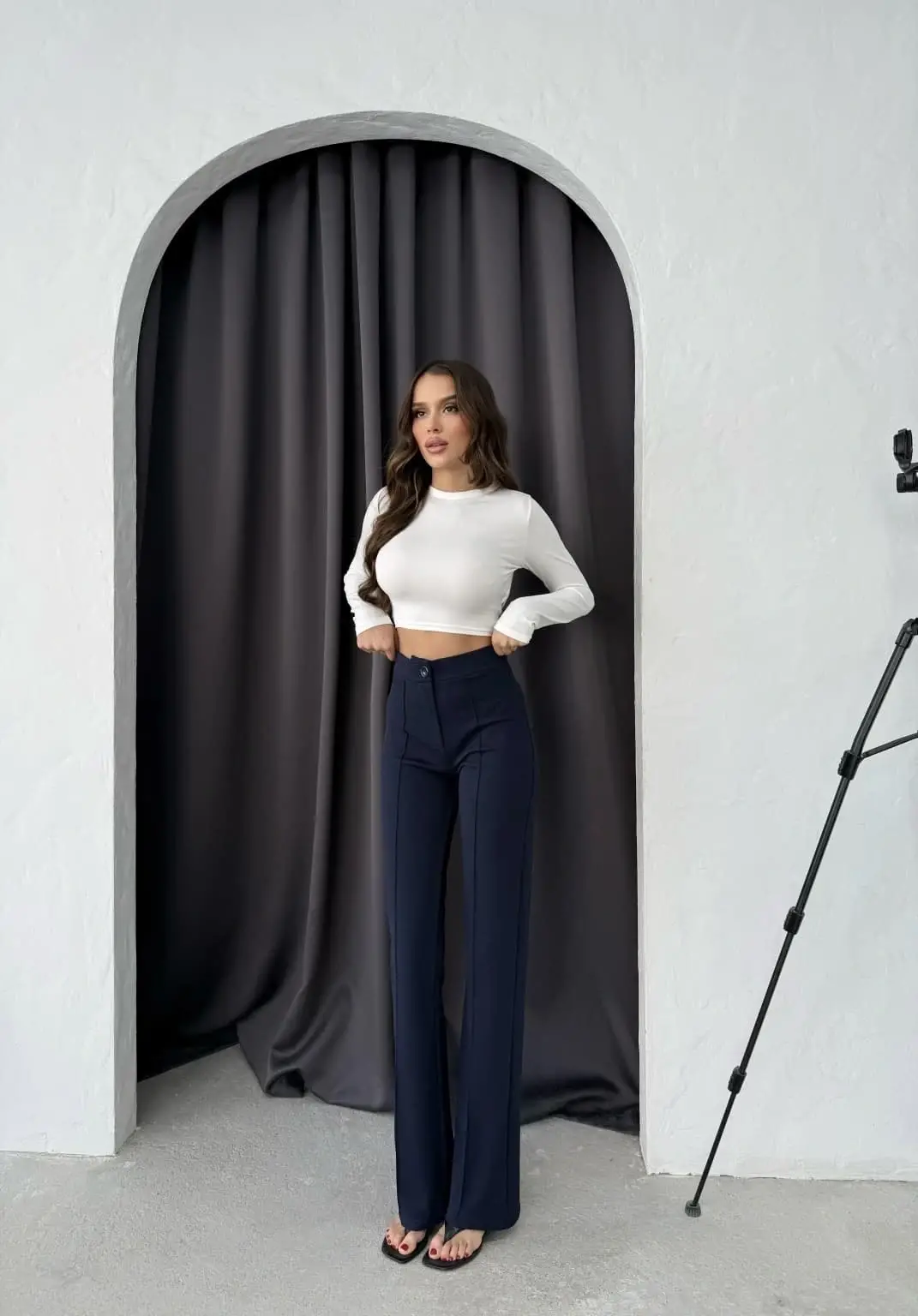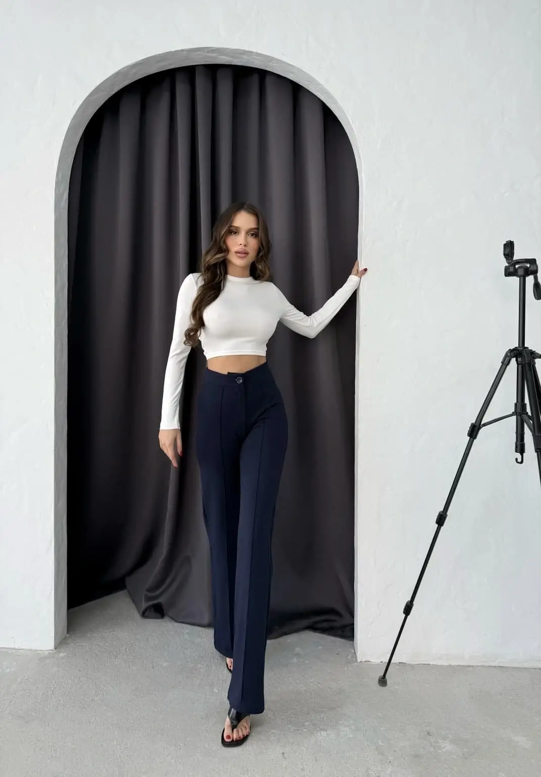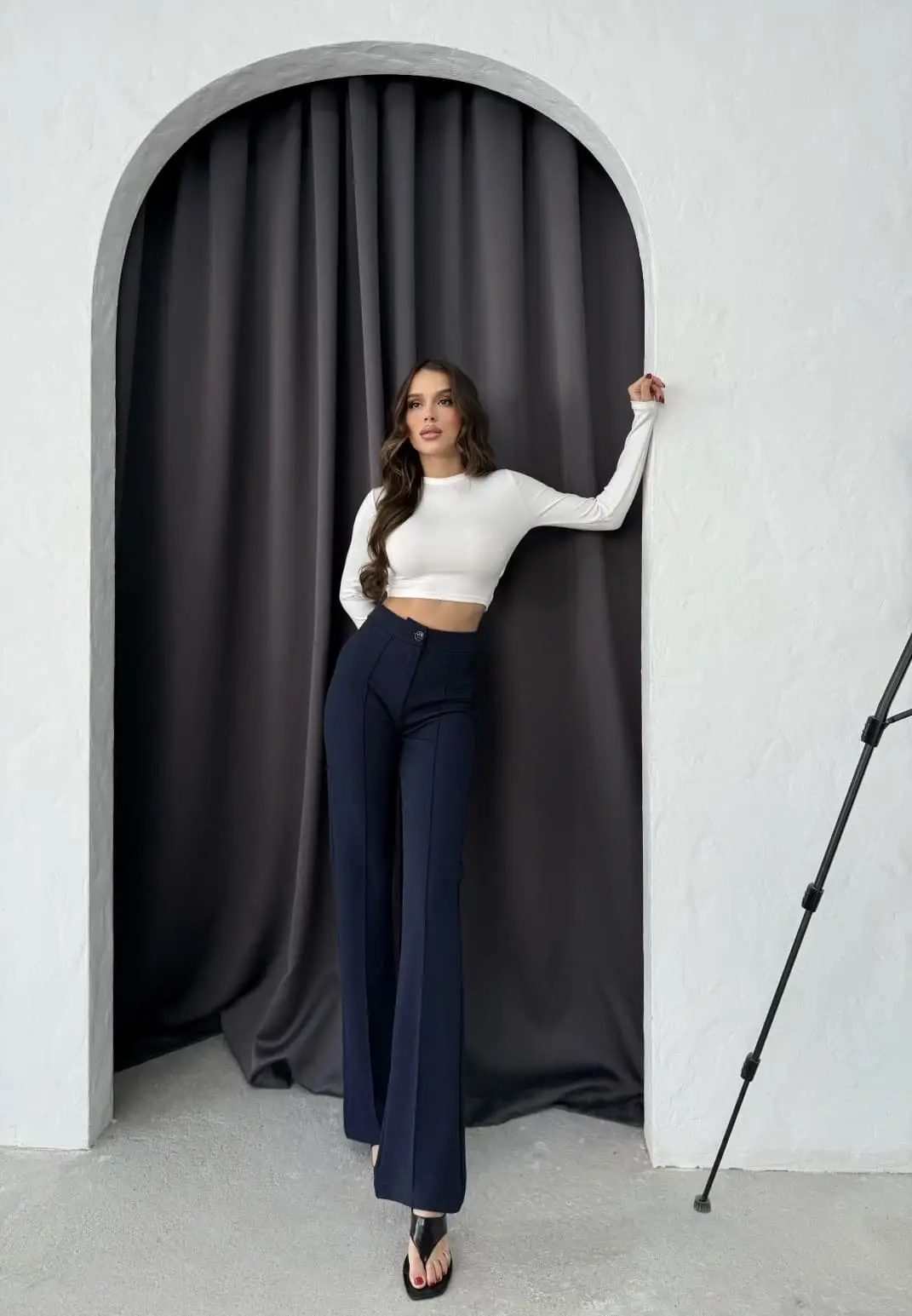 Şıklığı ve rahatlığı bir arada sunan Terzi Bey marka Düğmeli Palazzo pantolon ile tarzınızı konuşturun. Yüksek bel tasarımıyla vücudu saran bu pantolon, zarif lacivert rengiyle her kombinle uyum sağlar. Geniş paçası sayesinde hareket özgürlüğü sunarken, belindeki düğme detaylarıyla da göz alıcı bir görünüm katmaktadır.