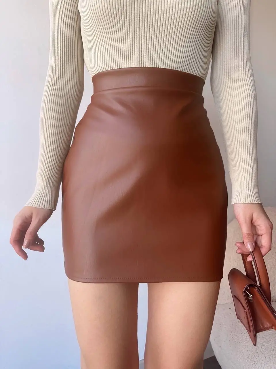 Şıklığı ve zarafeti bir arada sunan Düz Deri Etek Taba H24468, gardırobunuzun vazgeçilmez parçalarından biri olmaya aday. Hem günlük hem de özel günlerde rahatlıkla tercih edebileceğiniz etek, şıklığıyla göz kamaştırıyor.
