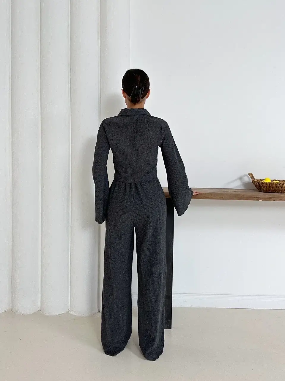 Şıklığı ve zarafeti bir arada sunan Gömlek Yaka Kaplama Düğmeli Takım Antrasit ST265866 ile öne çıkın.