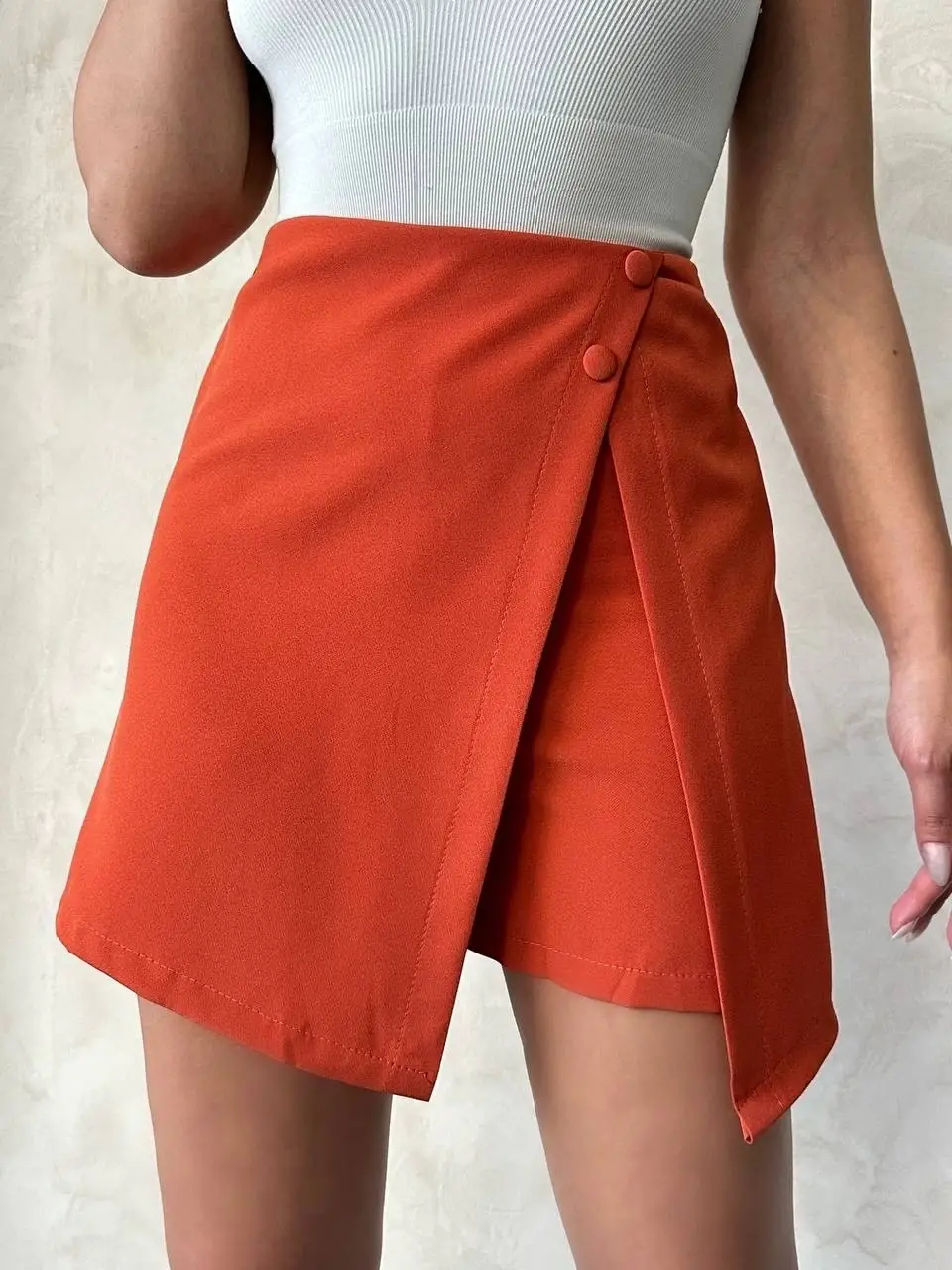 İki düğmeli kapaklı şort etek kremit s24046, şıklığı ve rahatlığı bir arada sunuyor.