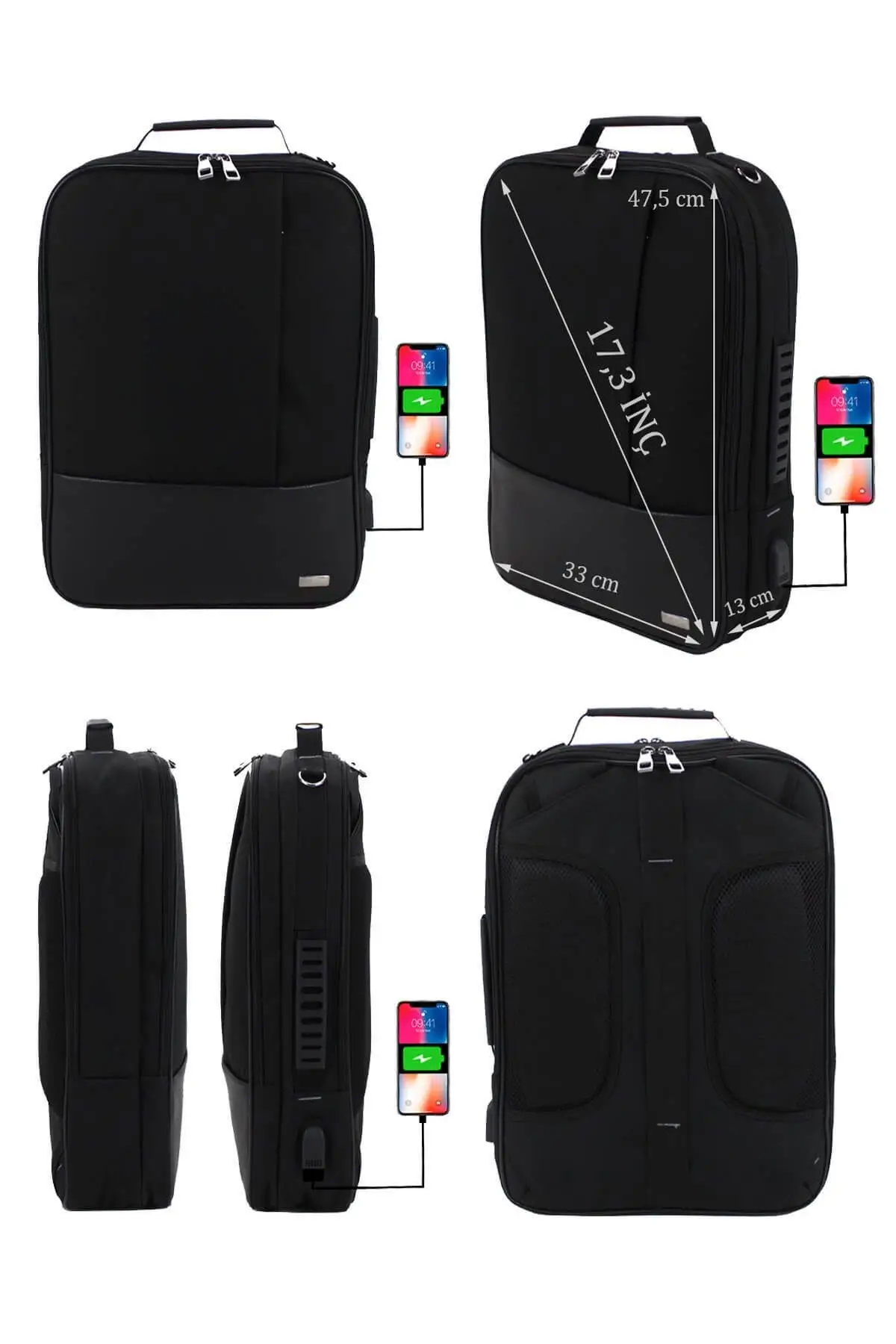 Su Geçirmez Kumaş 17,3 inç Siyah Laptop Sırt Çantası