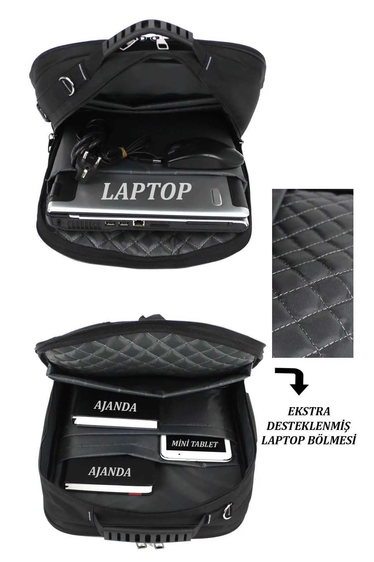 17,3 inç Sportif Keten Kumaş Siyah Laptop Sırt El Ve Omuz Çantası