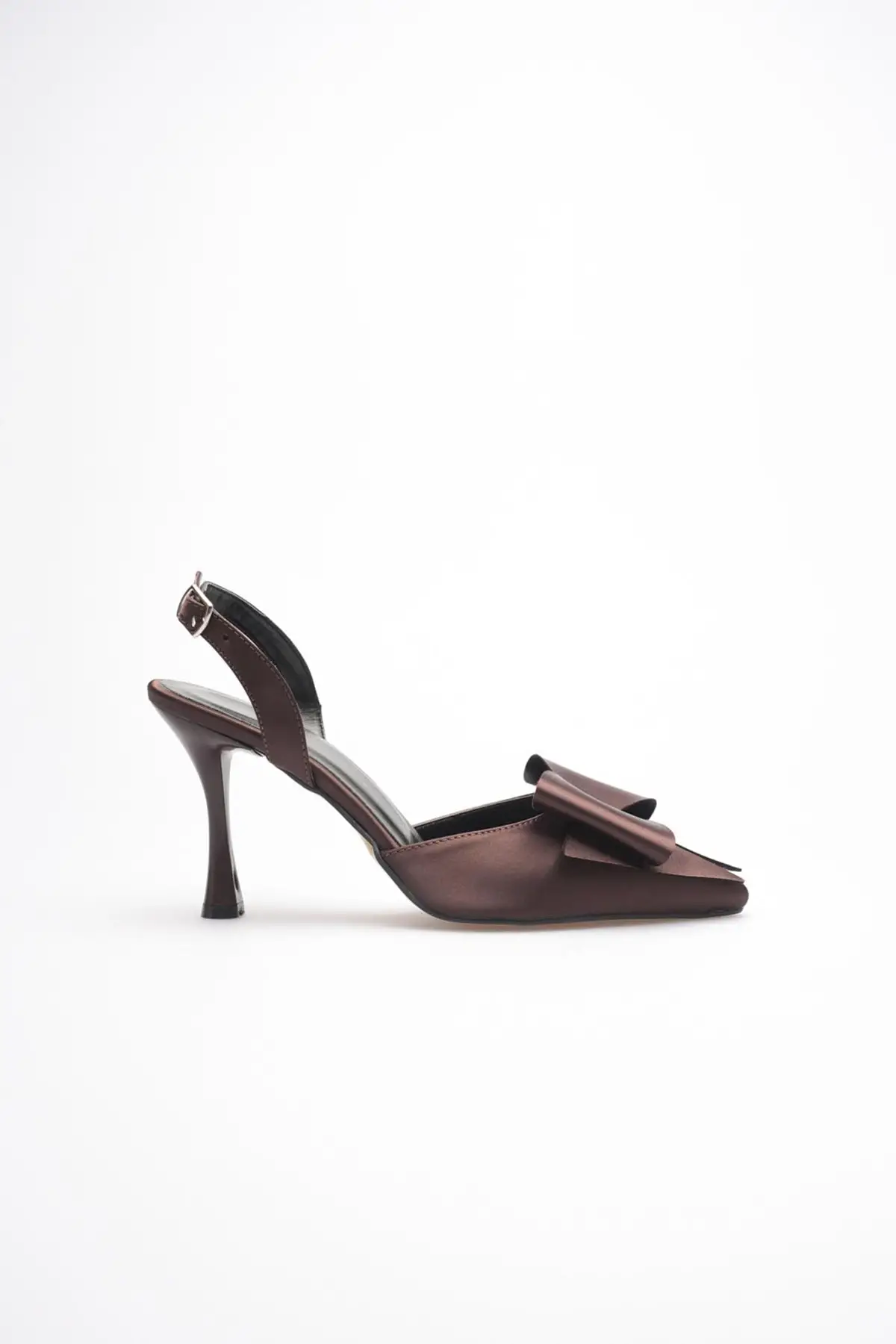 Kadın Acı Kahve Fiyonklu Saten Slingback Topuklu Ayakkabı TR40MS01C