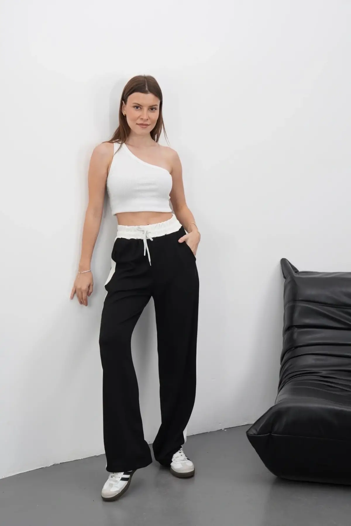 Yarım Balıkçı Yaka Çizgili Oversize Triko Kazak Siyahbeyaz