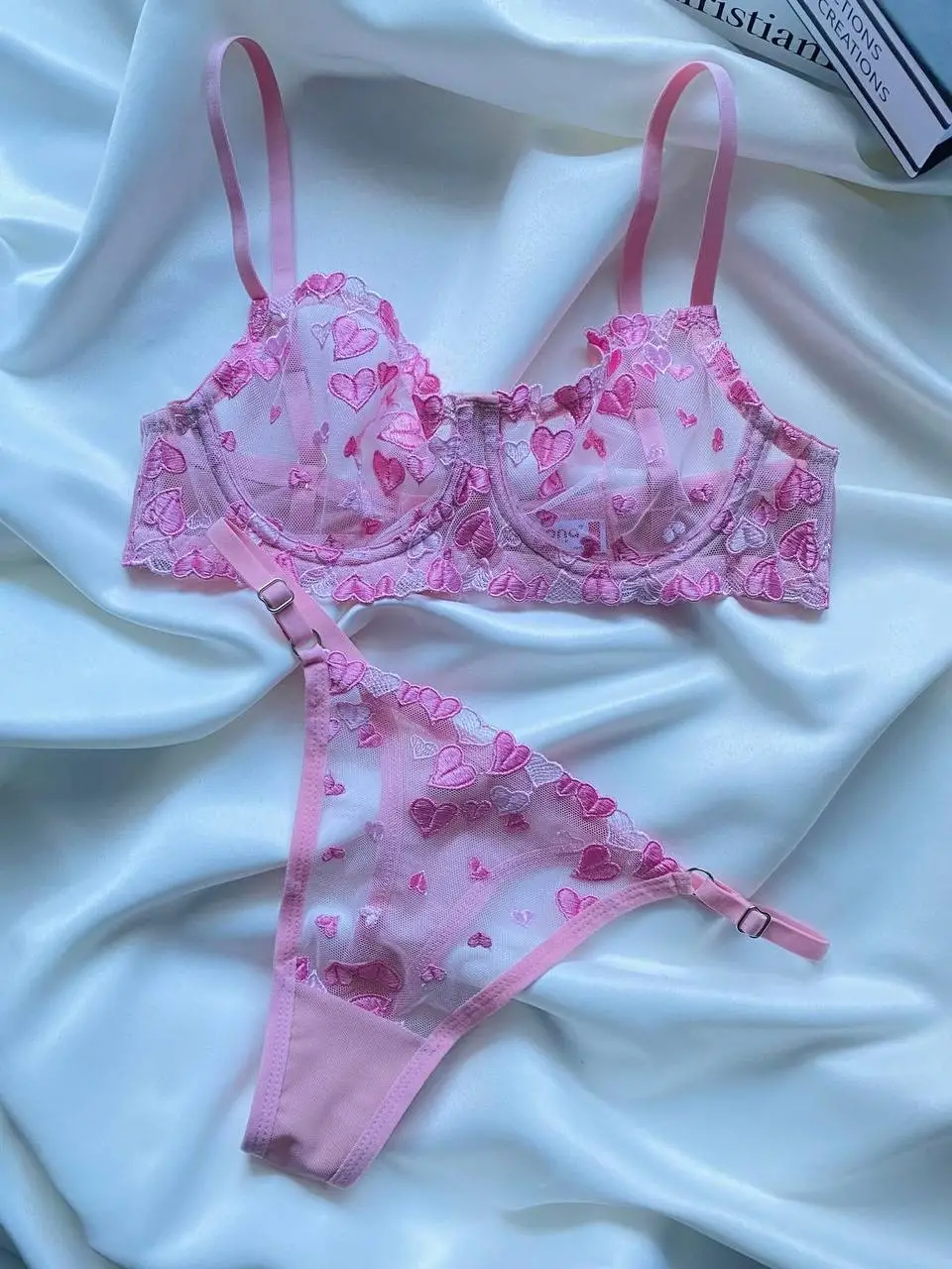 Kadın Kalpli Pembe Dantelli Balenli Sütyen Külot Takım, modern tasarımı ve üstün konforu bir araya getiren eşsiz bir üründür. Günlük kullanıma uygun yapısı, kaliteli malzeme seçimi ve şık görünümü ile kadınların gardırobunun vazgeçilmez parçalarından biri olmaya adaydır.