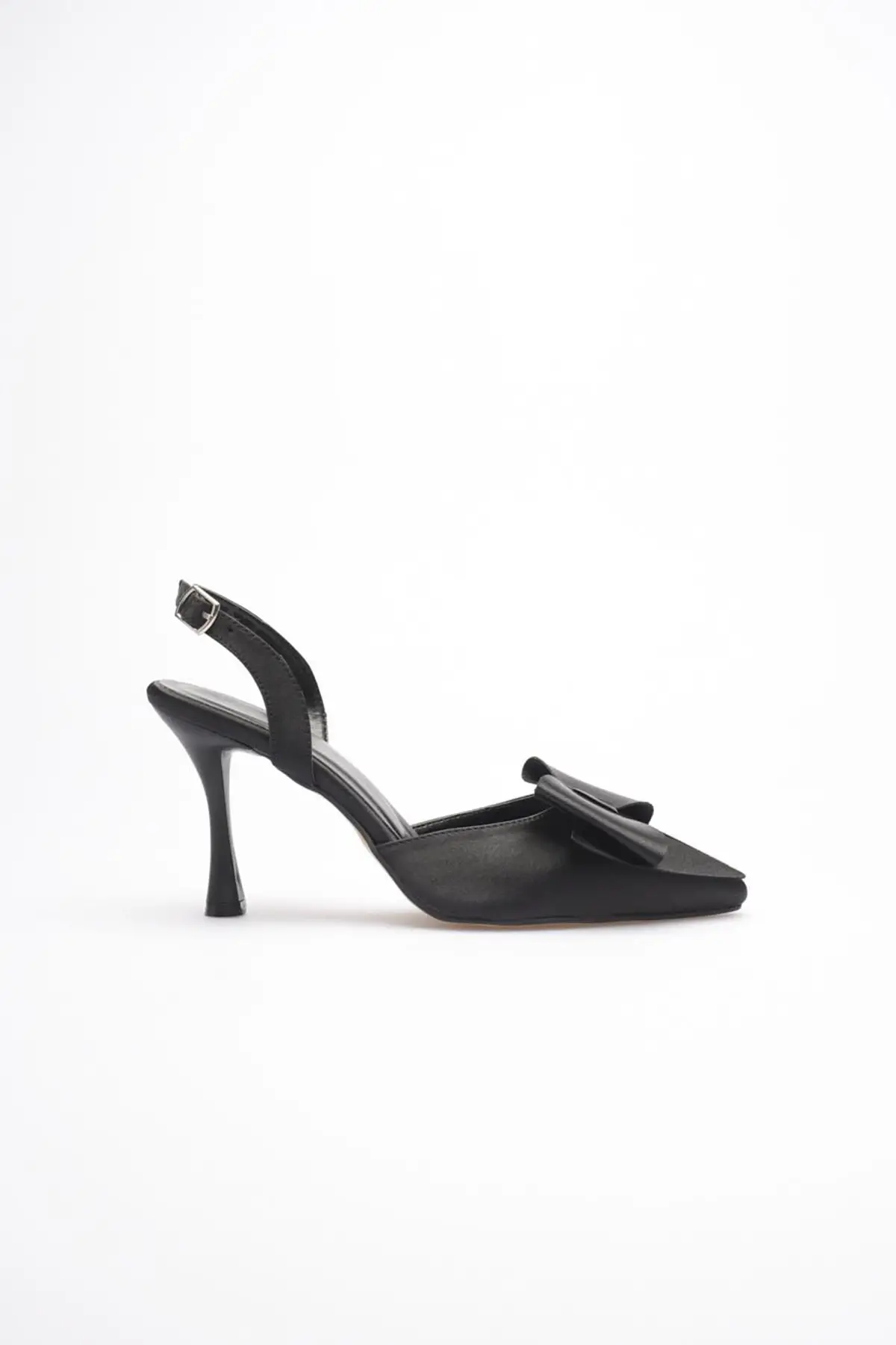 Kadın Siyah Fiyonklu Saten Slingback Topuklu Ayakkabı TR40MS01A