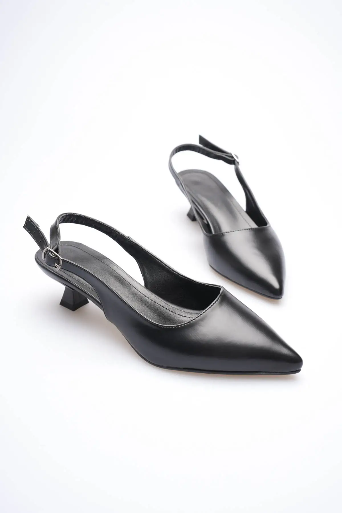 KADIN SİYAH SİVRİ BURUN SLİNGBACK KISA TOPUKLU AYAKKABI TR20MS04A