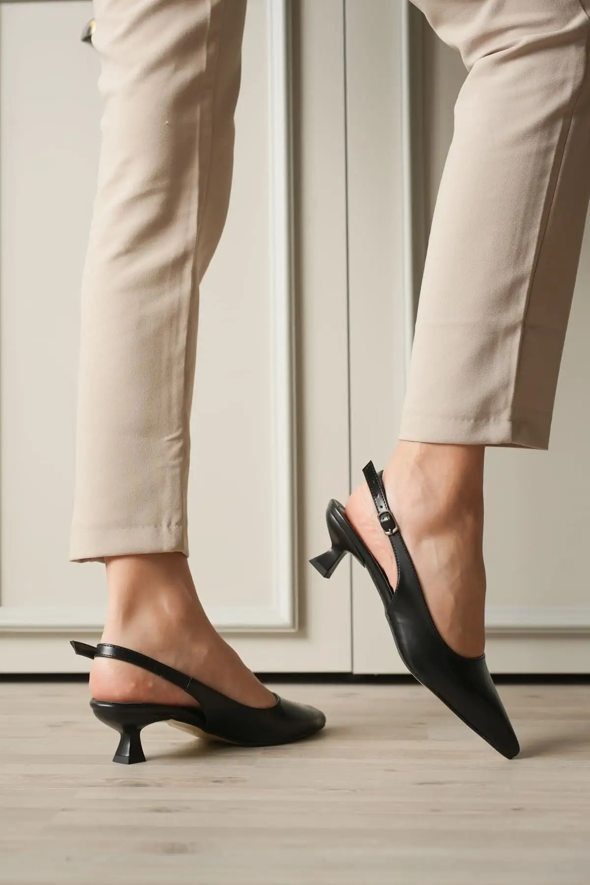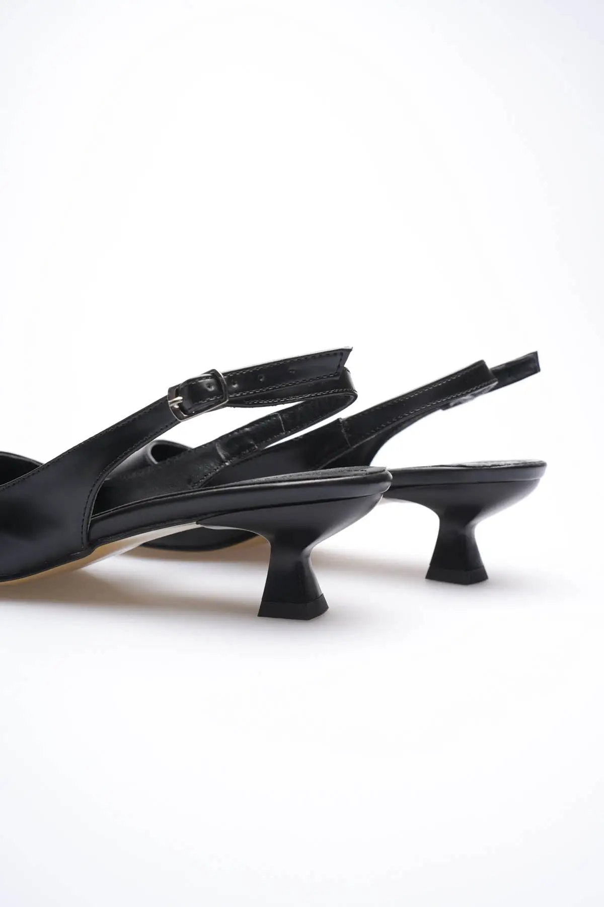 Kadın Siyah Sivri Burun Slingback Kısa Topuklu Ayakkabı TR20MS04A