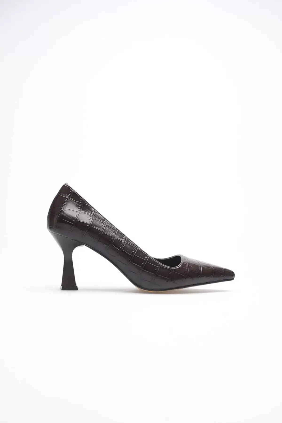 Acı Kahve Kroko Sivri Burun Orta Topuklu Kadın Stiletto TR20MS02G