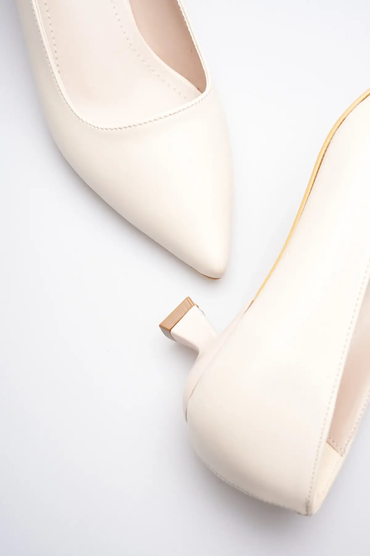Bej Sivri Burun Orta Topuklu Kadın Stiletto TR20MS02C