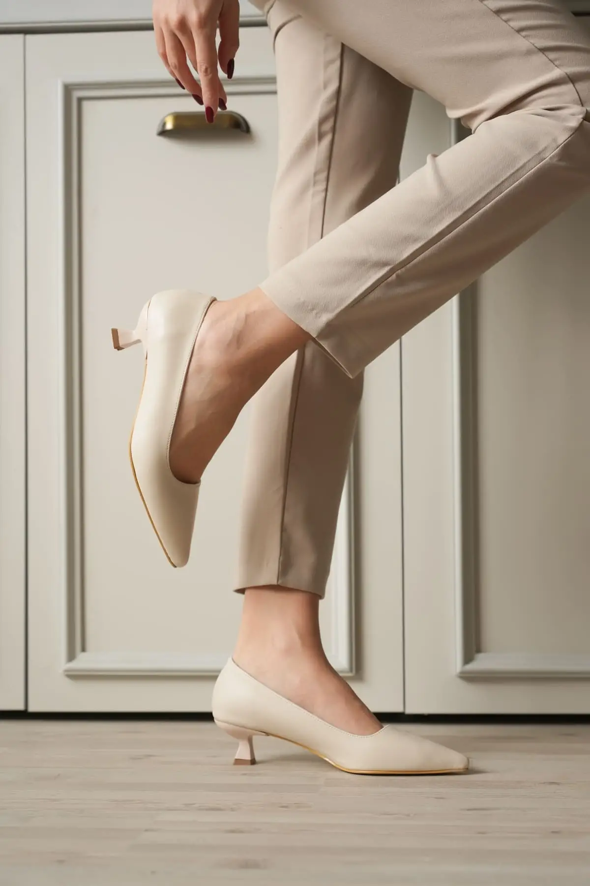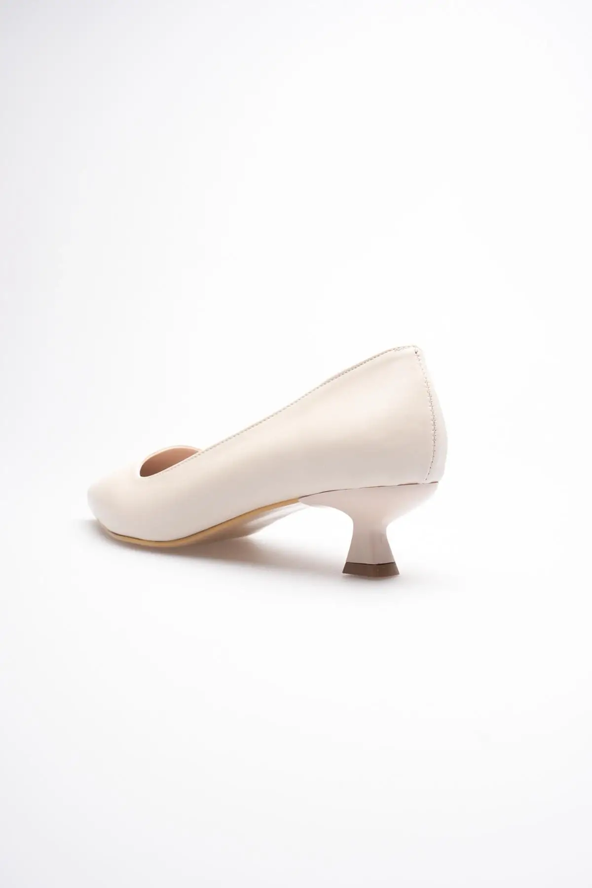 Bej Kadın Günlük Kısa Topuklu Stiletto Ayakkabı TR20MS03B