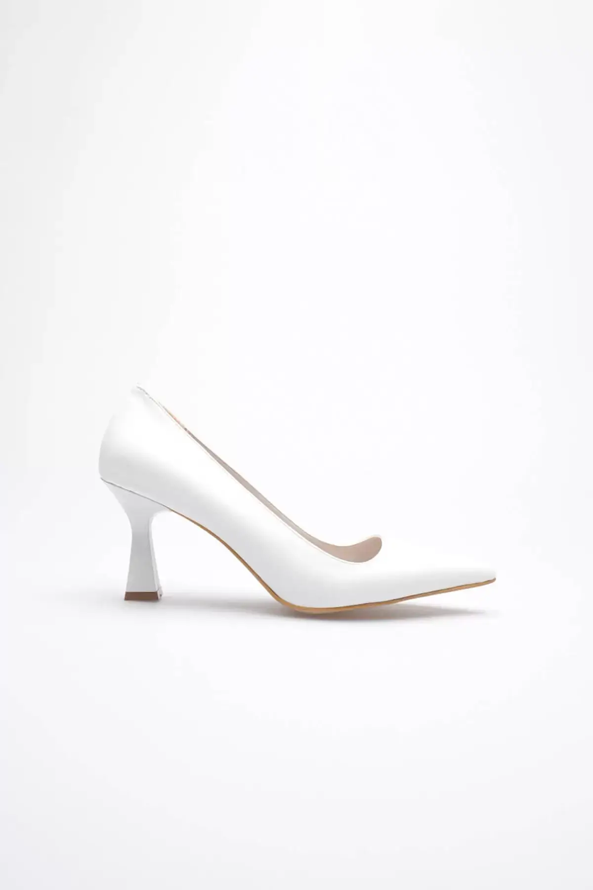 Beyaz Sivri Burun Orta Topuklu Kadın Stiletto TR20MS02B