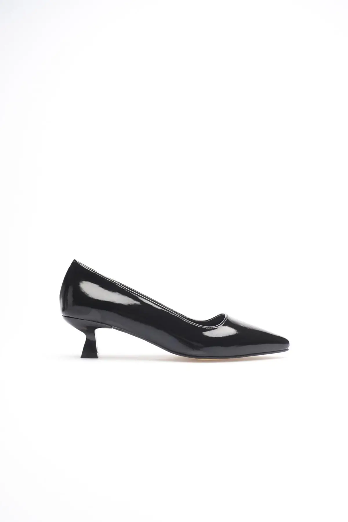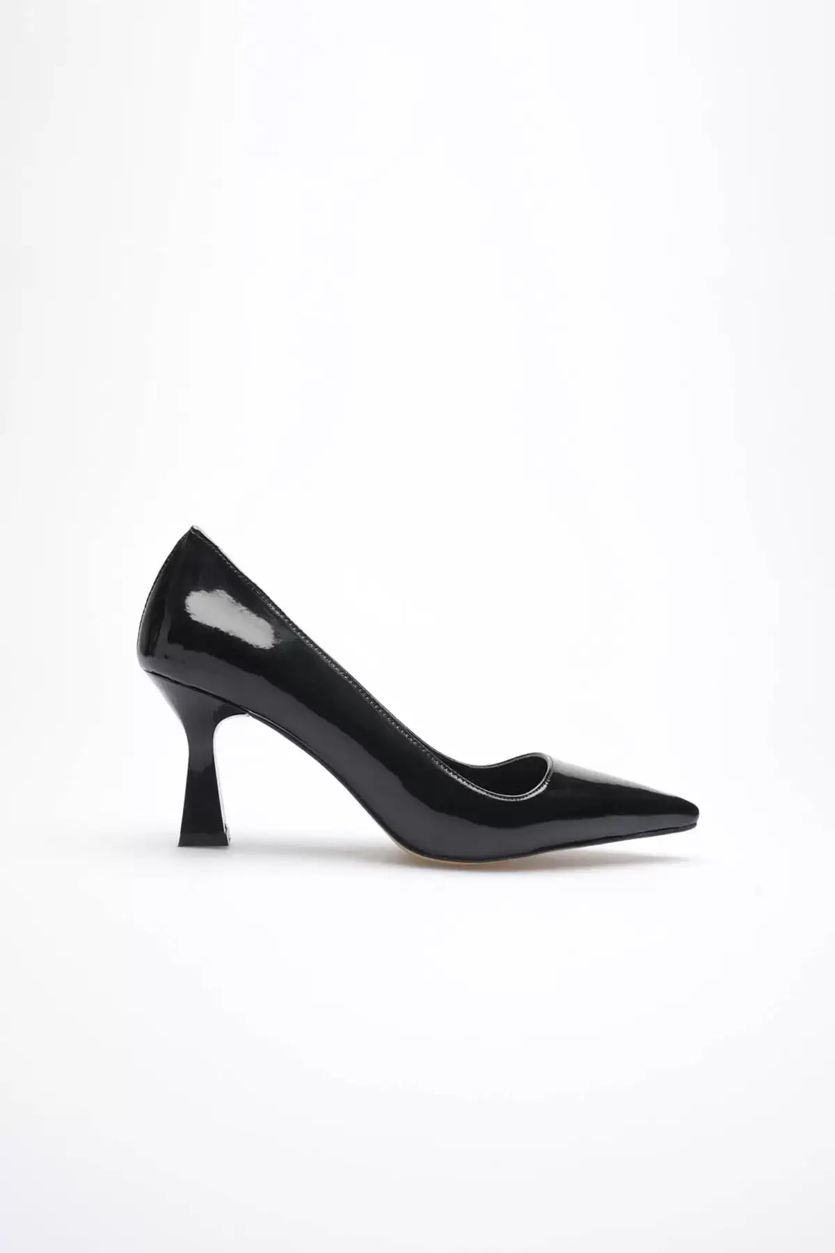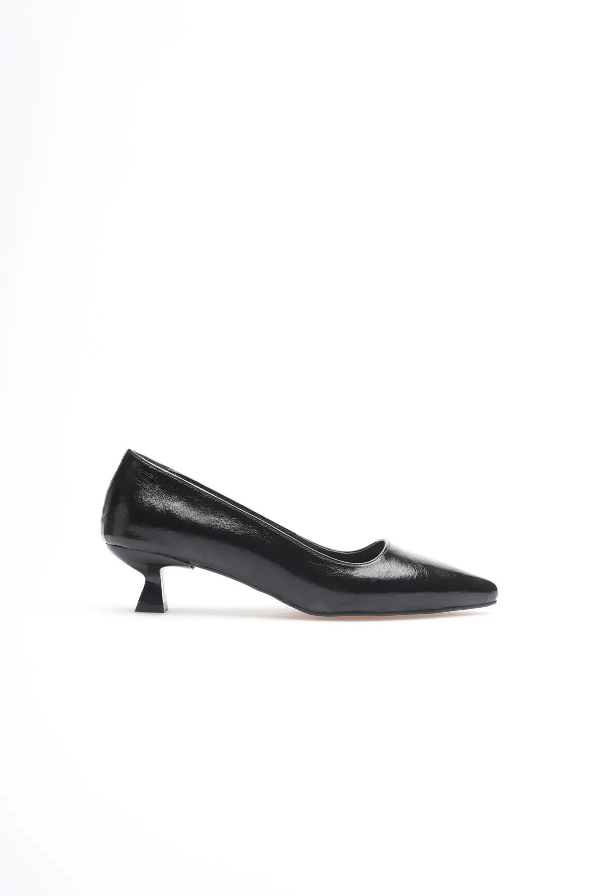 Siyah Rugan Sivri Burun Orta Topuklu Kadın Stiletto TR20MS02E