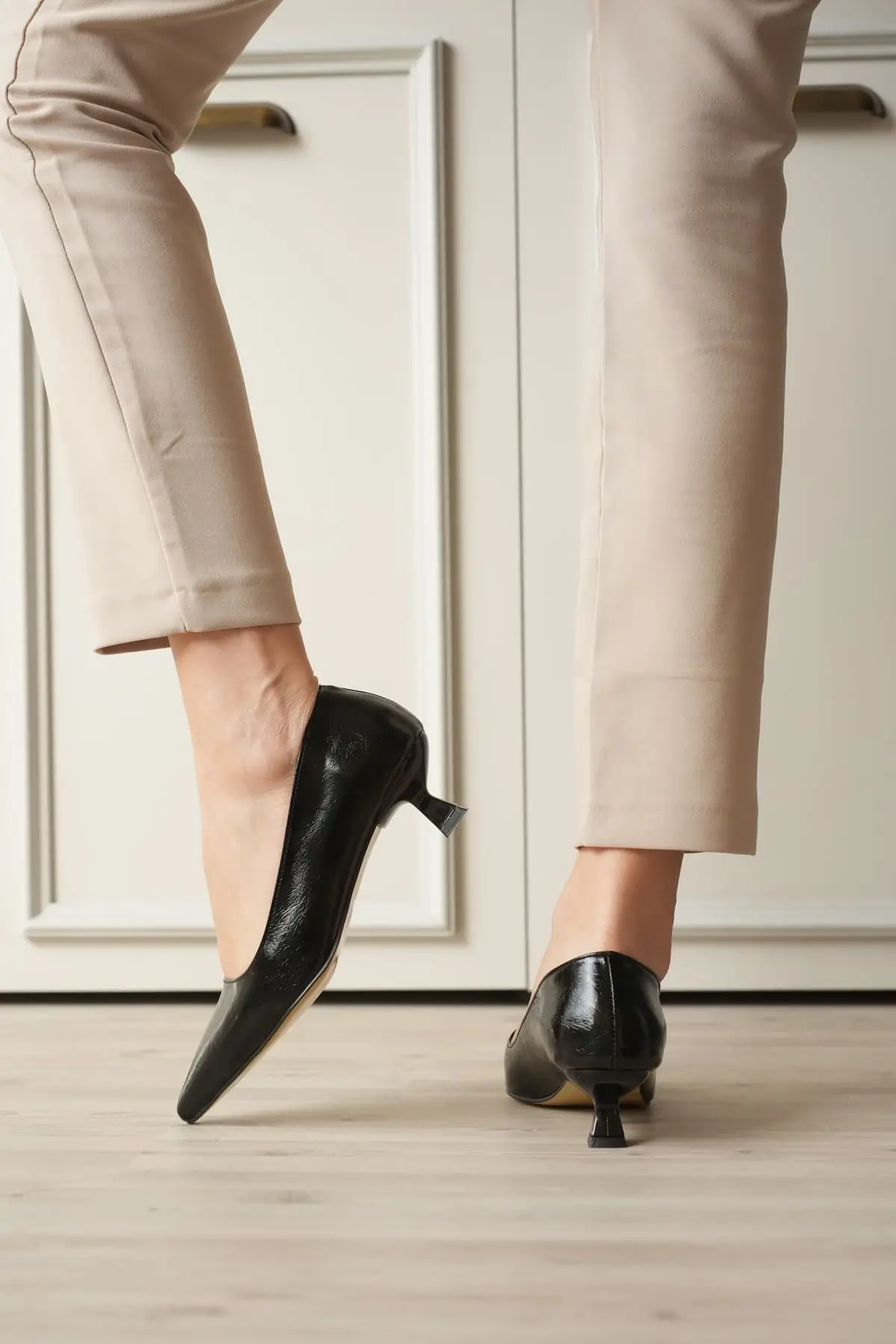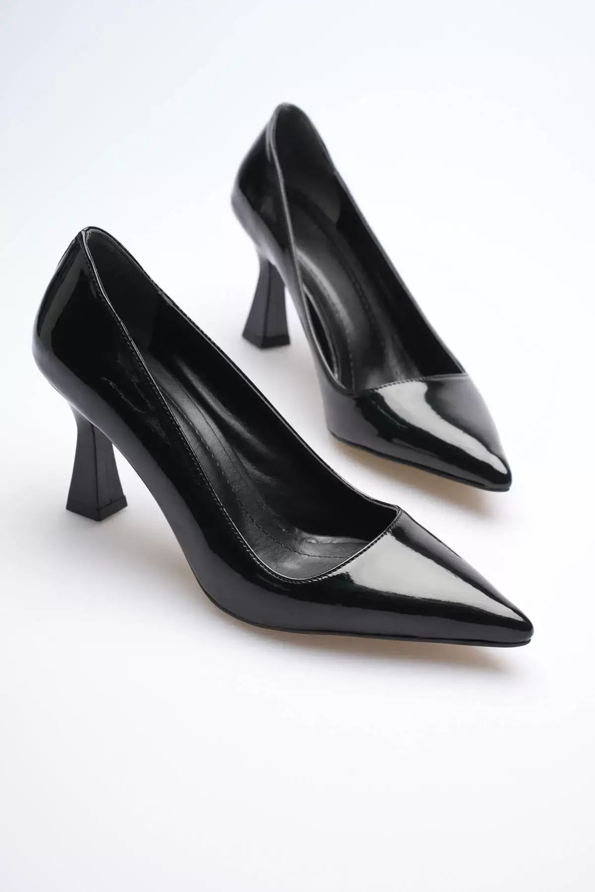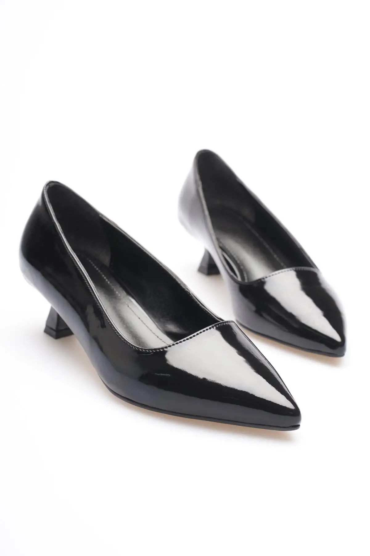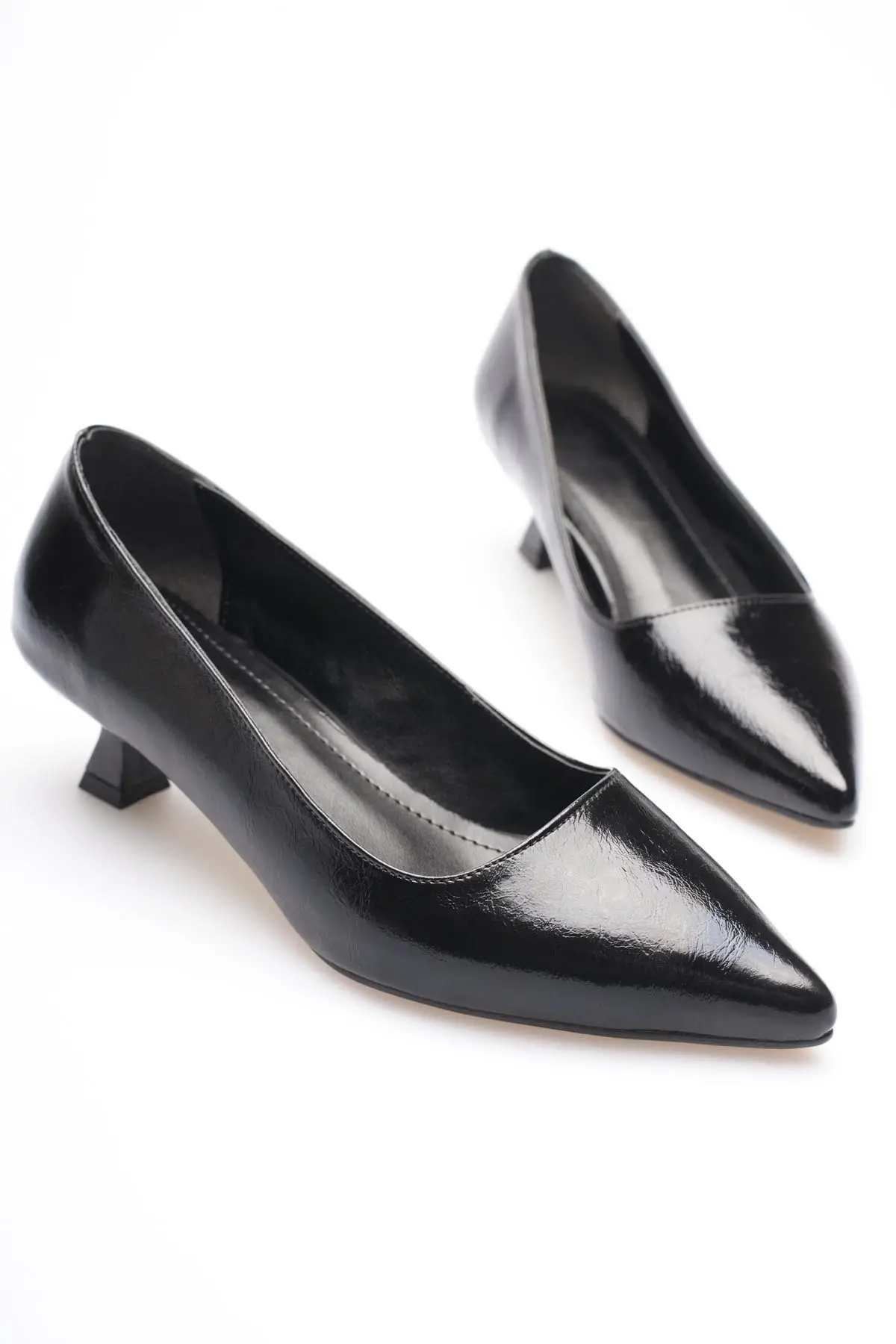 Siyah Rugan Sivri Burun Orta Topuklu Kadın Stiletto TR20MS02E