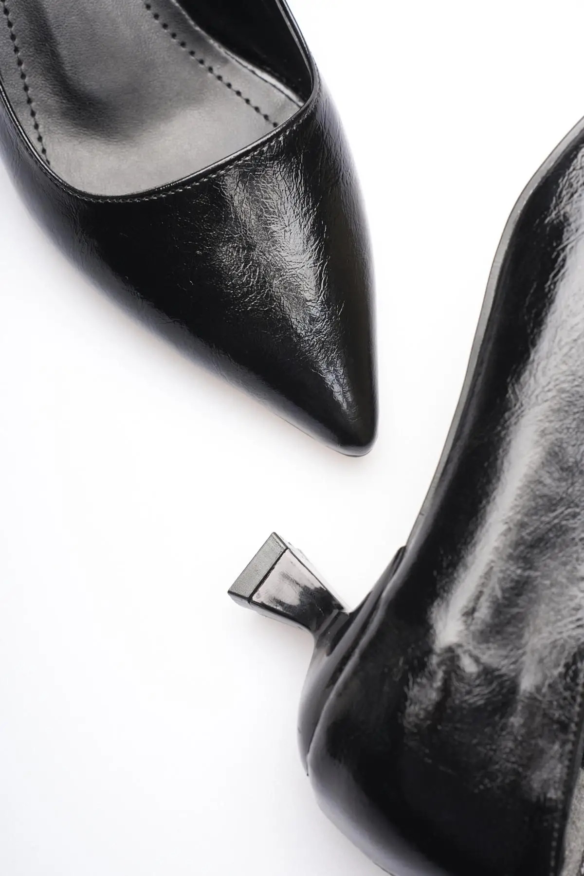 Kadın Siyah Kırışık Rugan Kısa Topuklu Stiletto Ayakkabı TR20MS03C