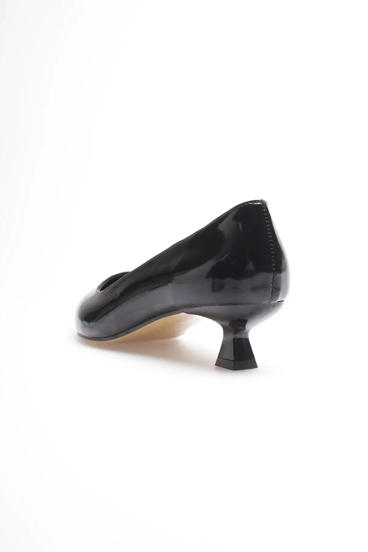 Kadın Siyah Rugan Kısa Topuklu Stiletto Ayakkabı TR20MS03E