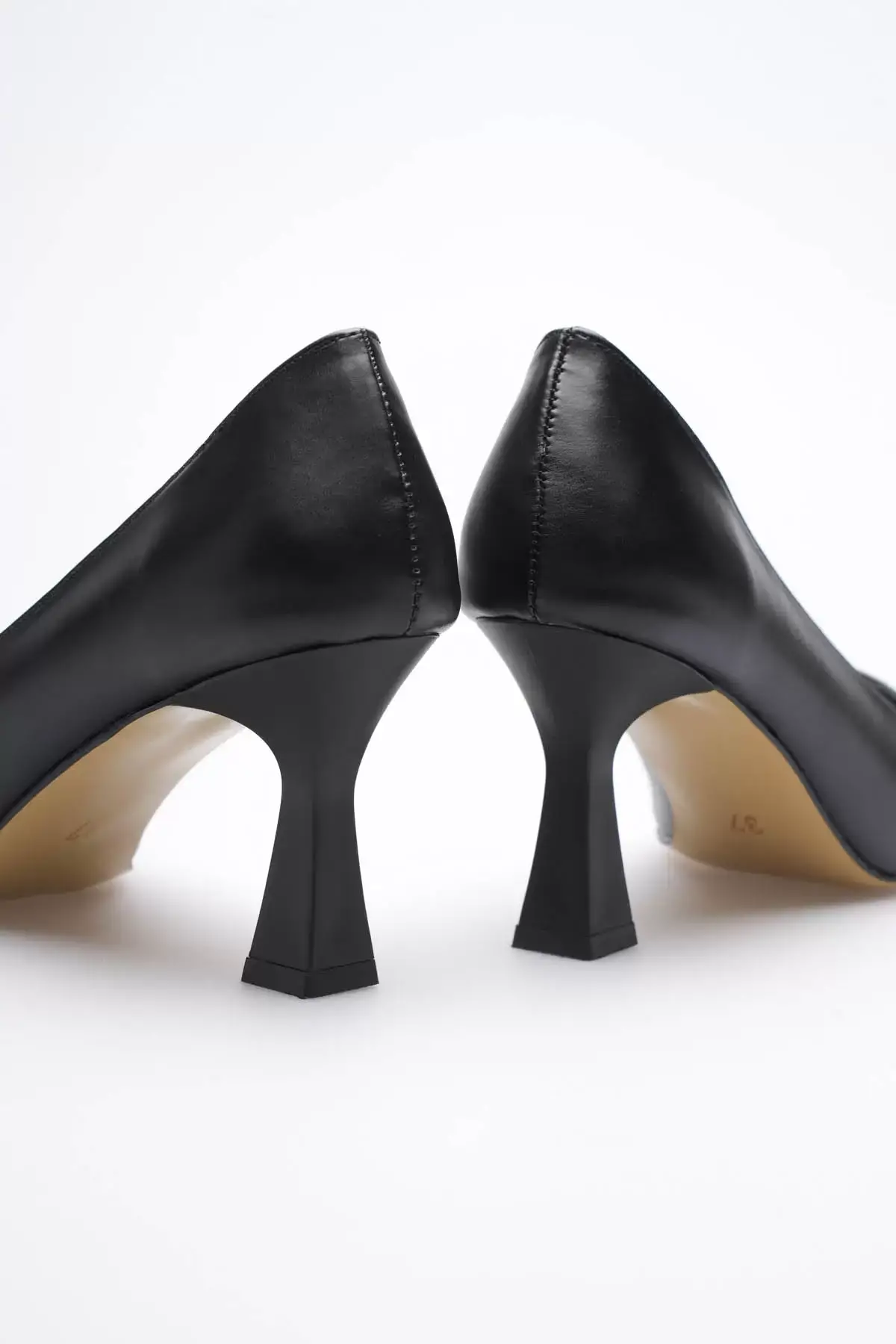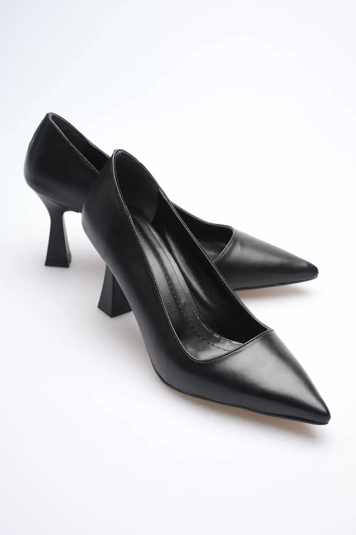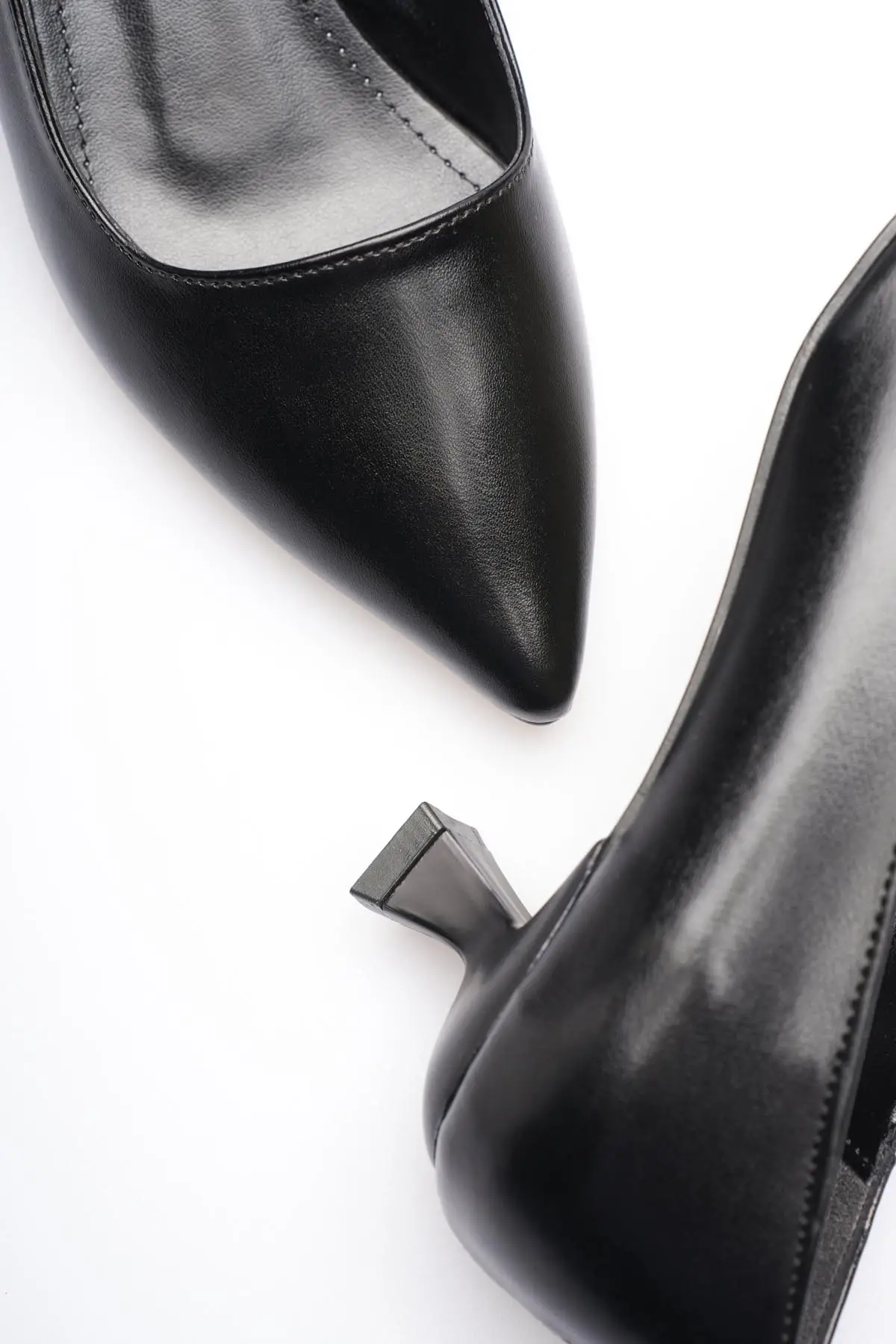 Siyah Sivri Burun Orta Topuklu Kadın Stiletto TR20MS02A